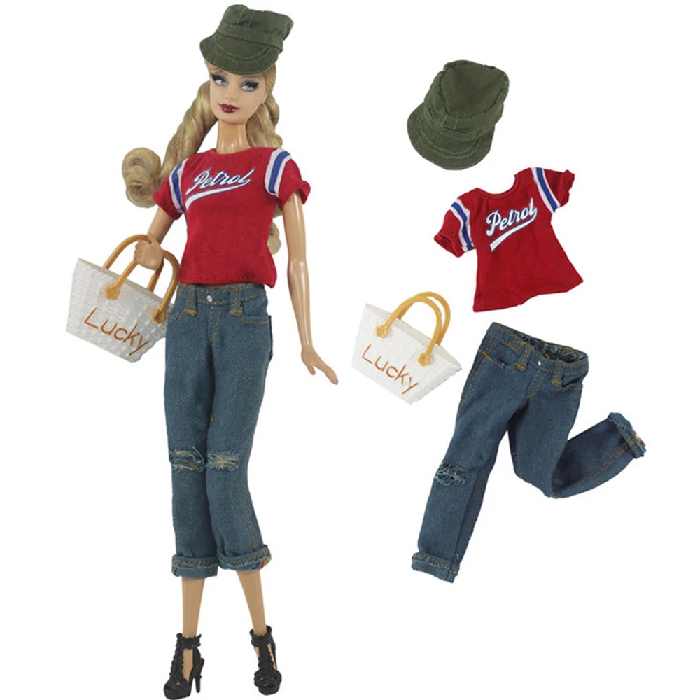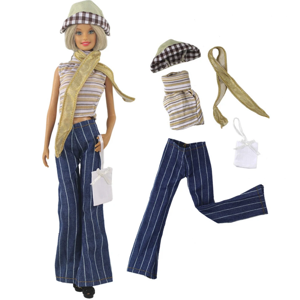 Костюм, как на фото. Подошёл на Барби с аналогичной фигурой. На Барби 90х штаны не налезли.