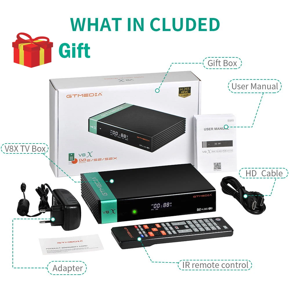 Распродажа, спутниковый ресивер Gtmedia V8X DVB-S2, Gtmedia V8 Nova V8 Honor, встроенный Wi-Fi H.265 1080P Full HD декодер, без приложения