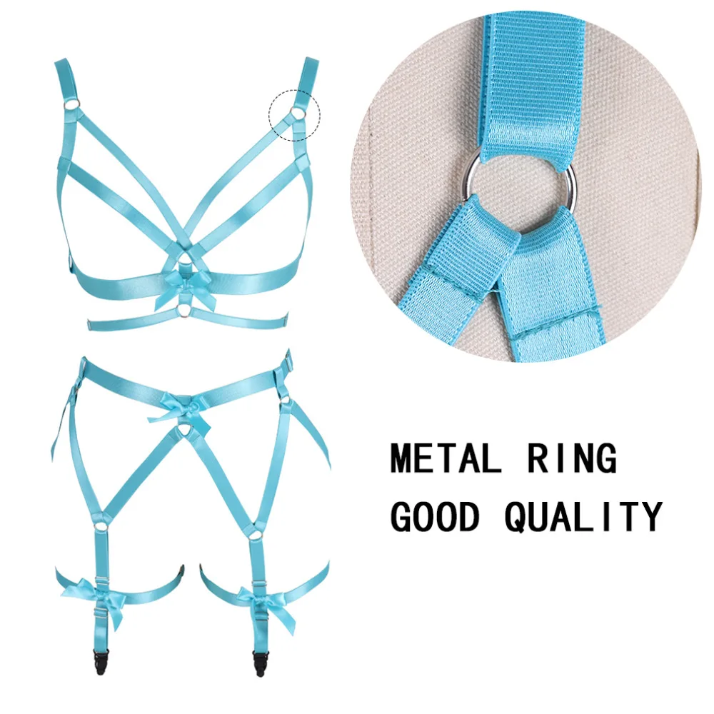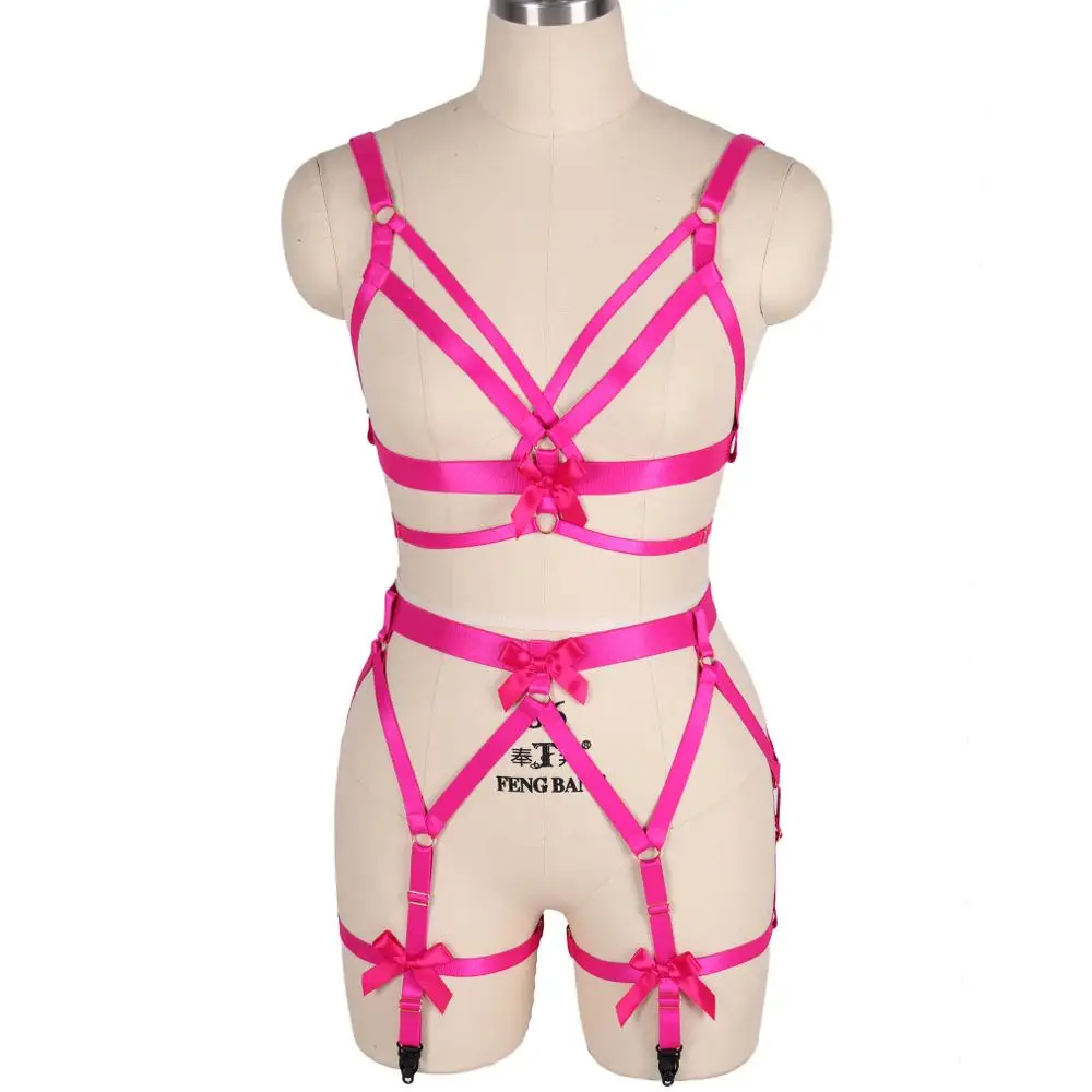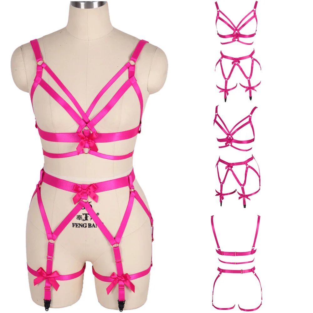 Портупея для всего тела, топ, розовый бант, подвязки для ног, пояс для талии, подвязки в стиле панк, Готическая Танцевальная вечеринка, Рейв, женское белье размера плюс