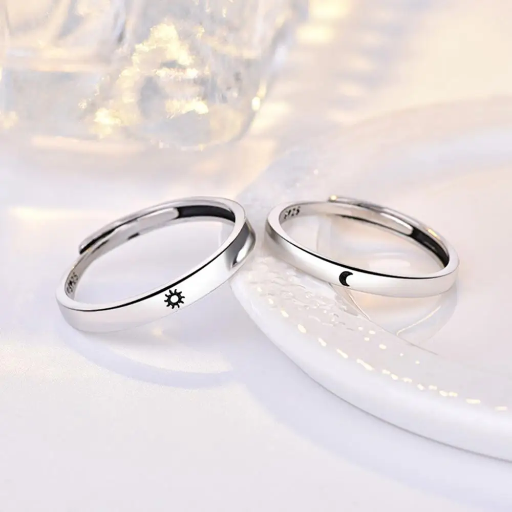 Кольцо с Луной и солнцем для мальчиков и девочек, простое регулируемое серебряное кольцо для пар, бижутерия для друзей, 1 шт.