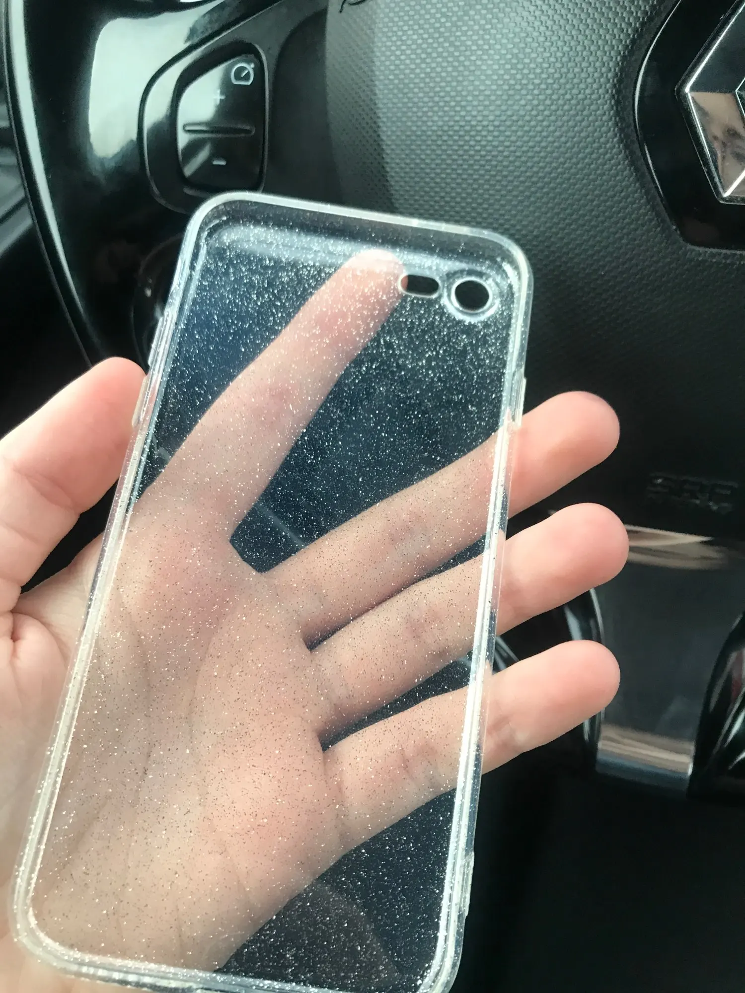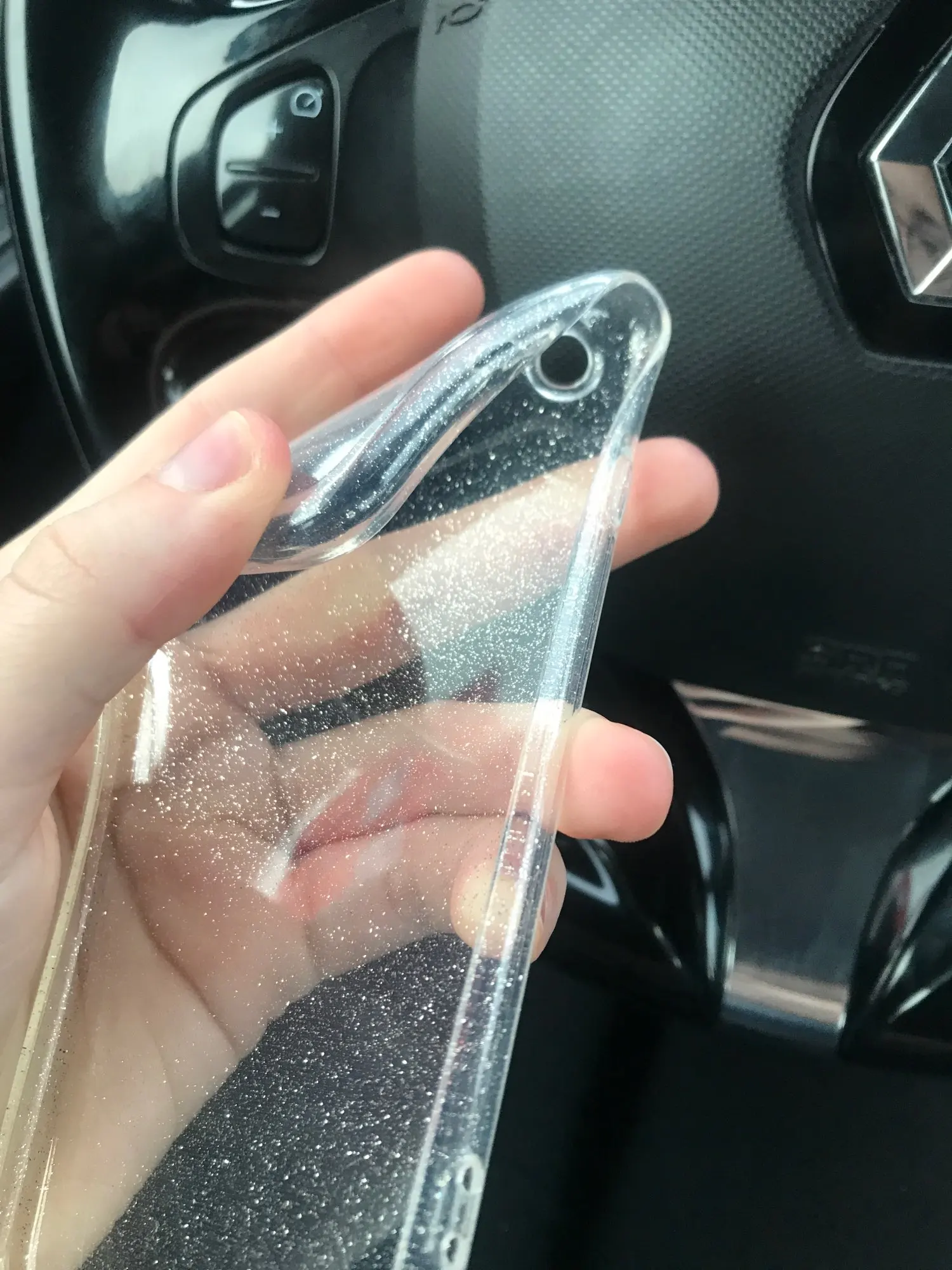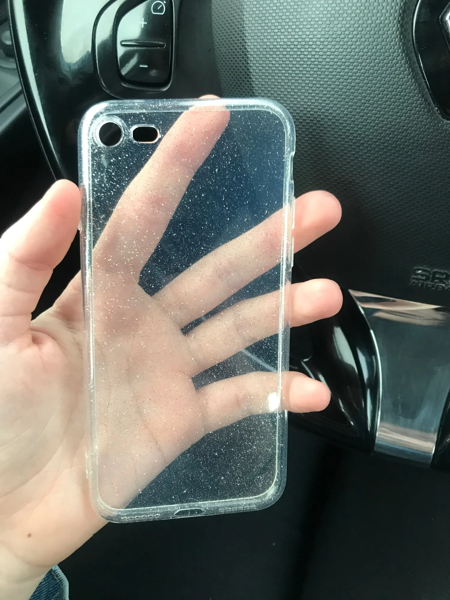 Выглядит так, как на фотографиях, но небрежно и делает мой телефон очень гладким и тонким, мерцание очень красивое