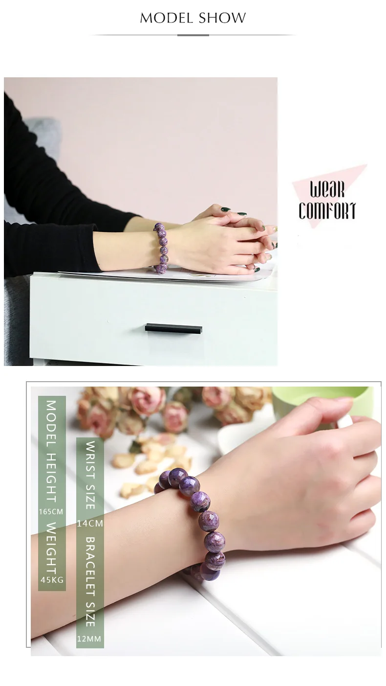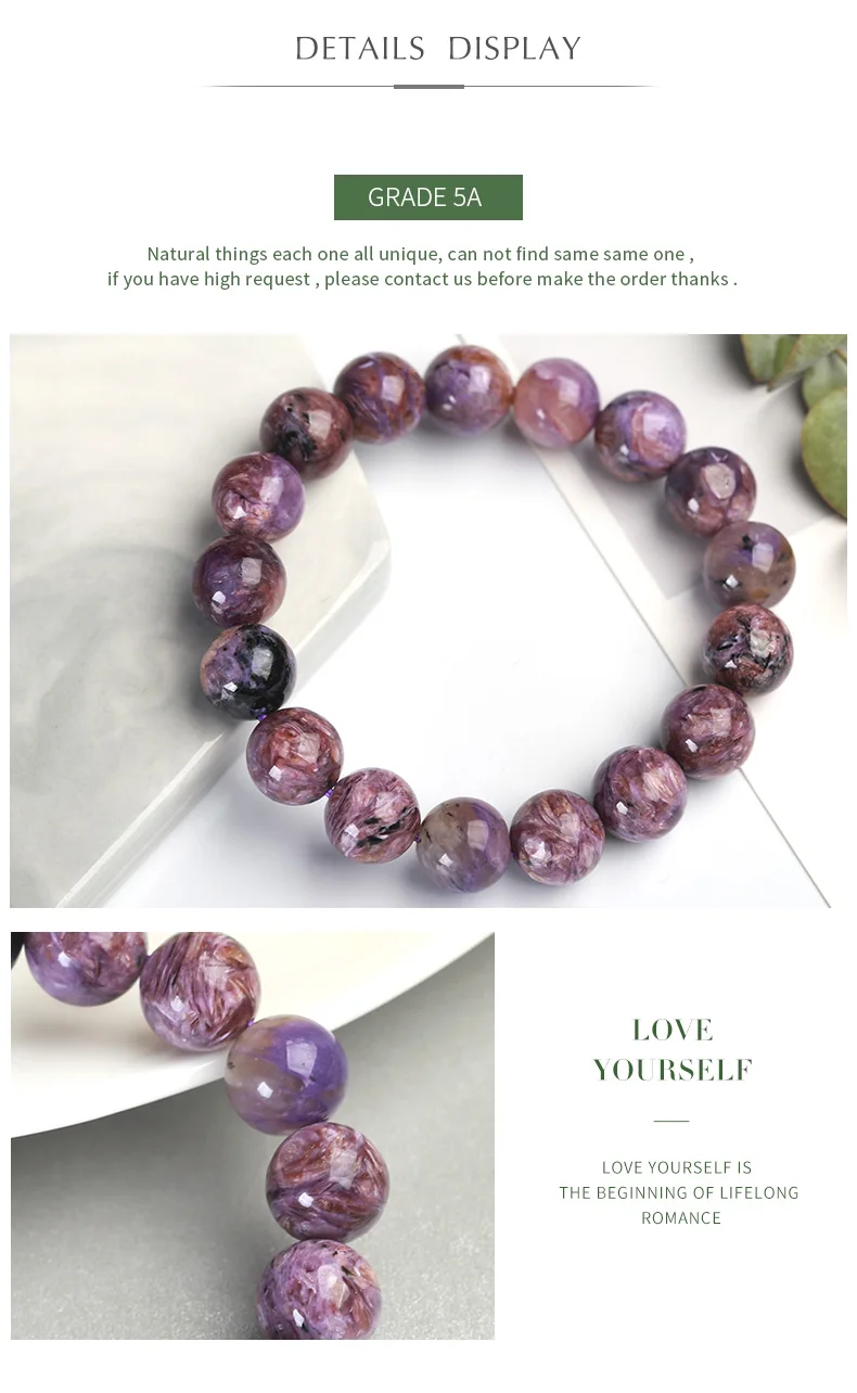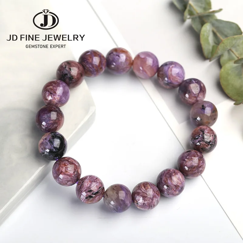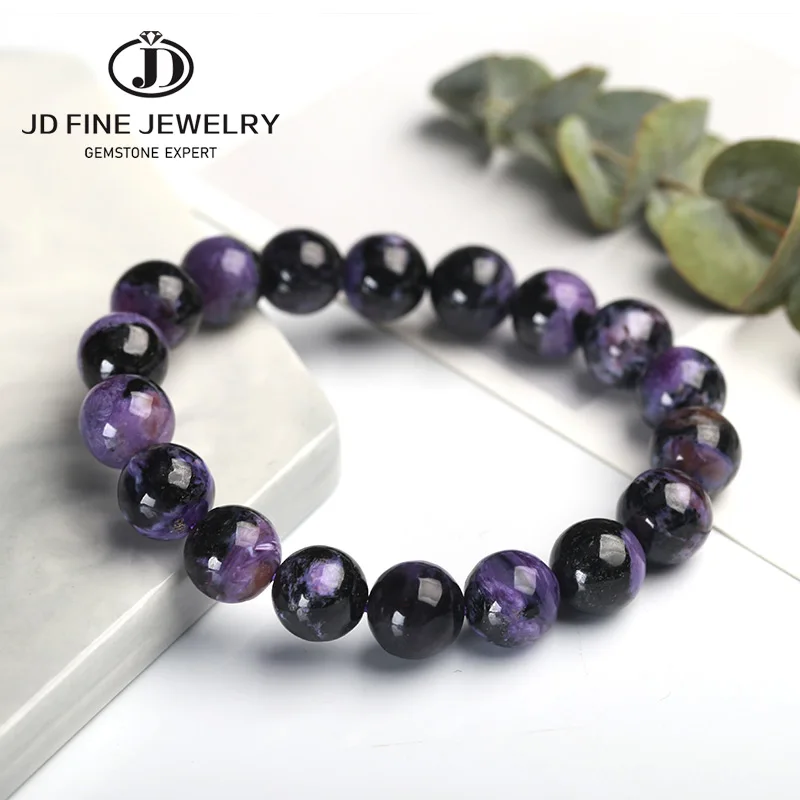 JD 6-12 мм полудрагоценные натуральные фиолетовые камни Чароит гладкие круглые свободный браслет с бусинами Подвески йога женщины медитация Amule