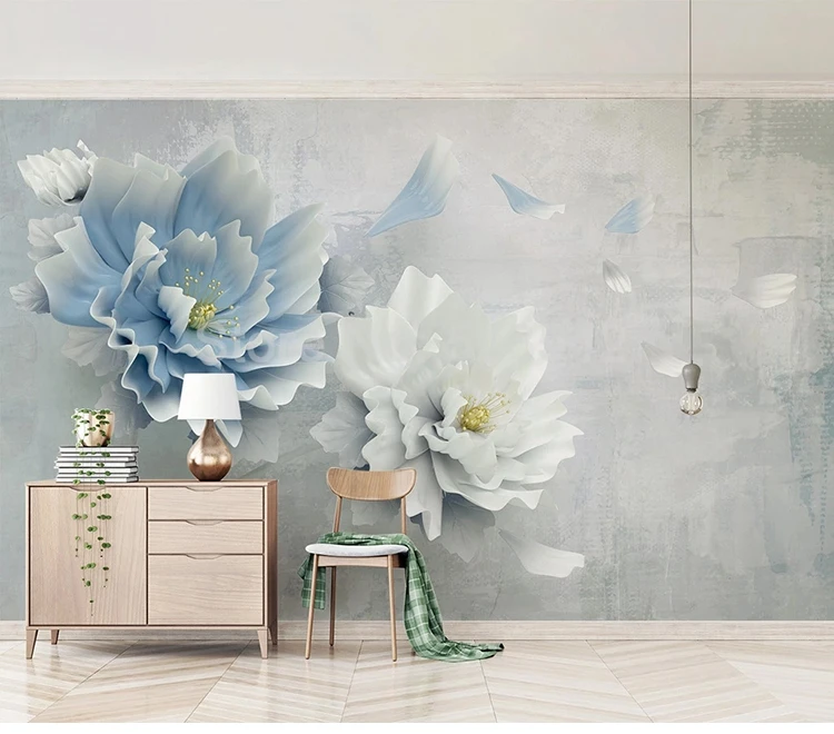 Пользовательские фото, современные креативные 3D стереоскопические тисненые цветы, фреска, наклейки для спальни, гостиной, Настенные обои, домашний декор