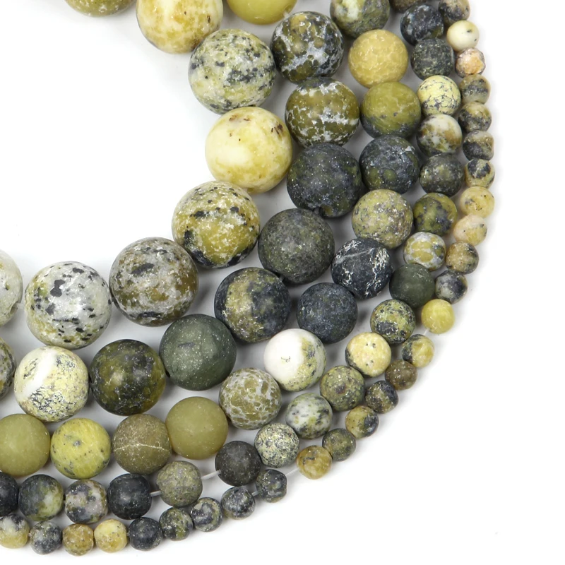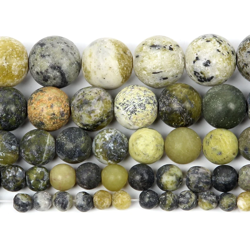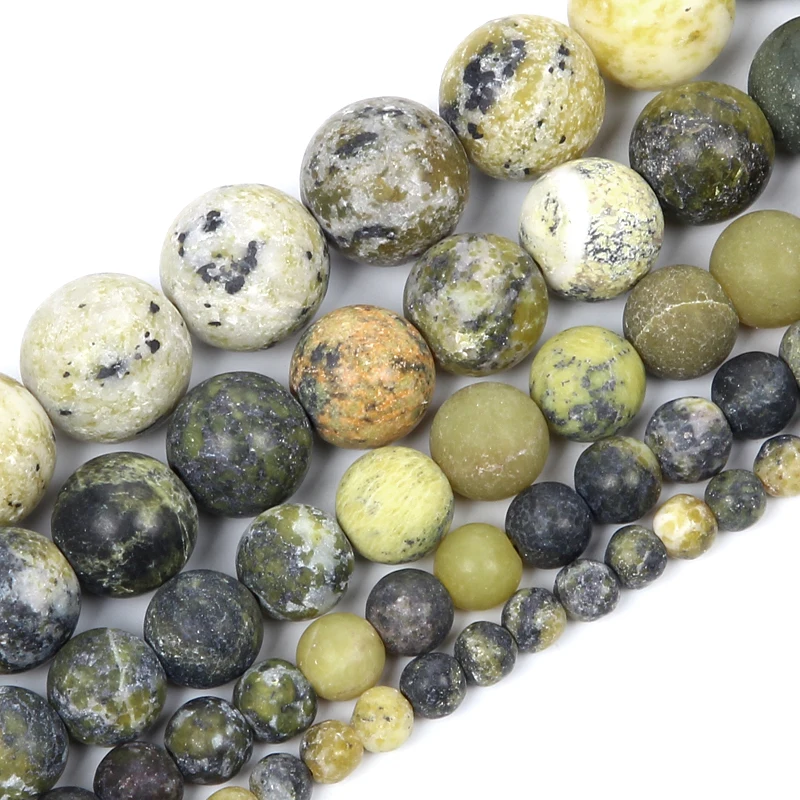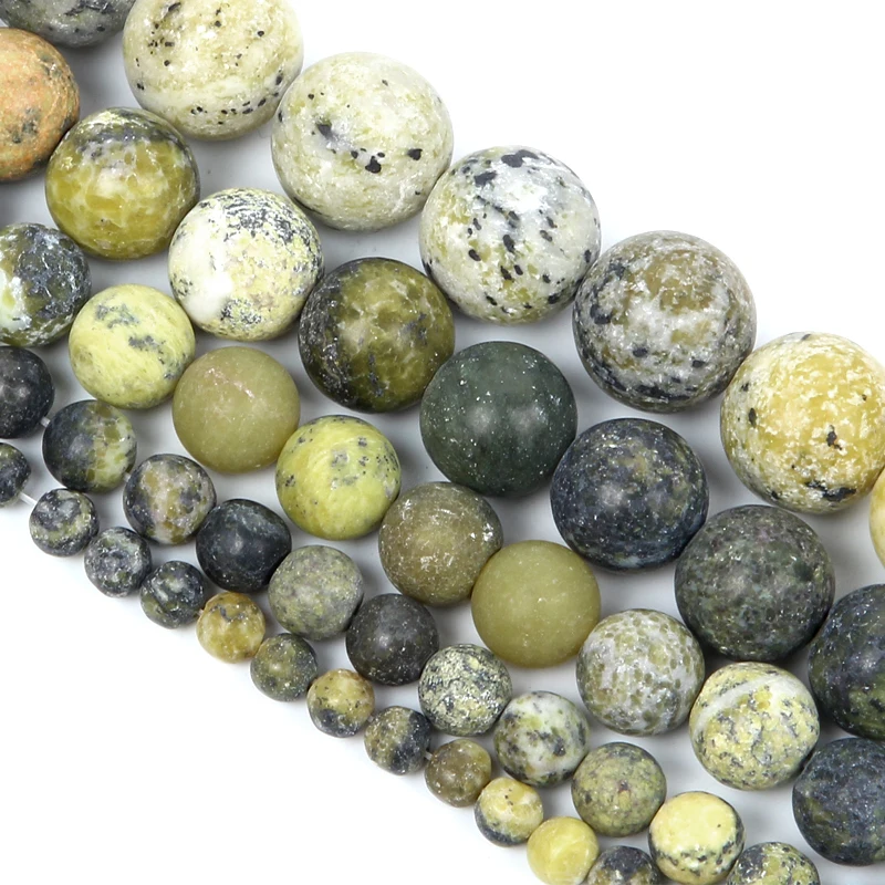 Круглые бусины россыпью из натурального камня с матовой травой и желтым камнем для изготовления ювелирных изделий, рукоделия, браслетов, нитка 4-12 мм