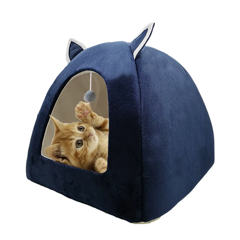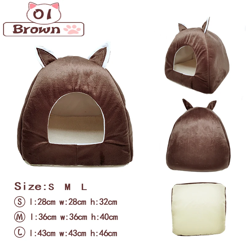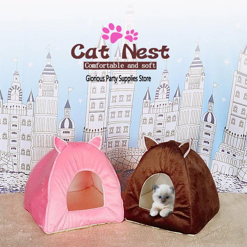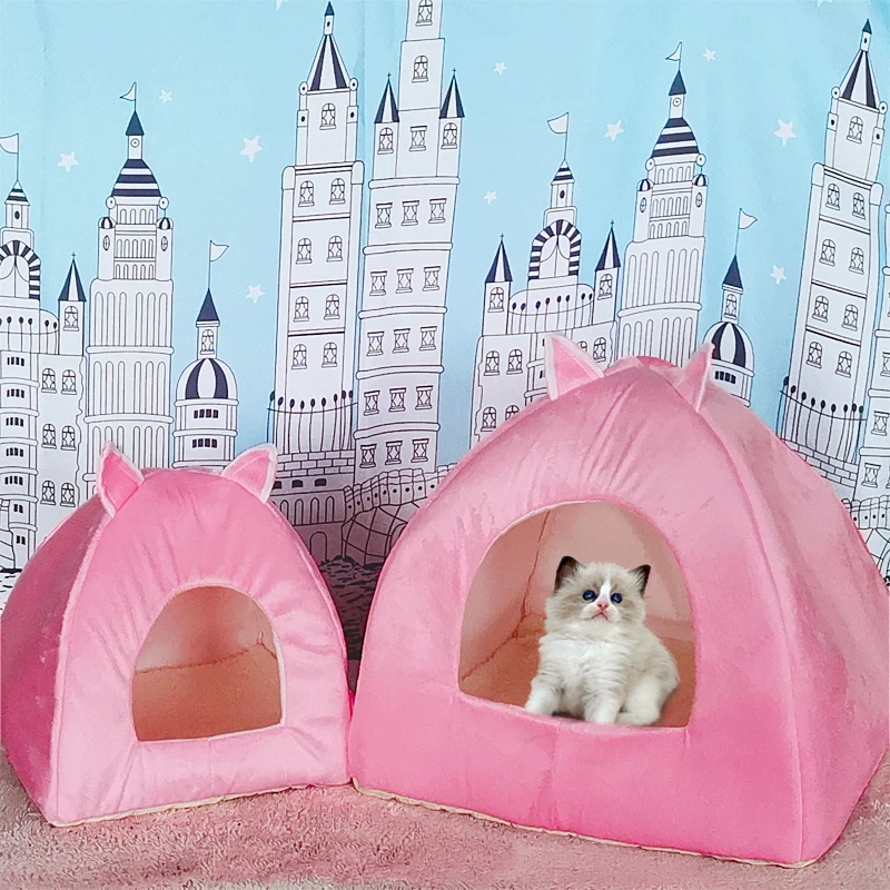 Складная кровать-палатка для кошек, теплое гнездо для котят и щенков, съемная Лежанка для домашних животных с мягким ковриком, универсальный домик
