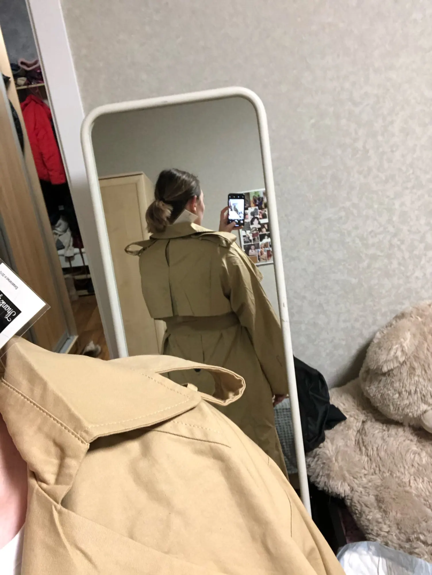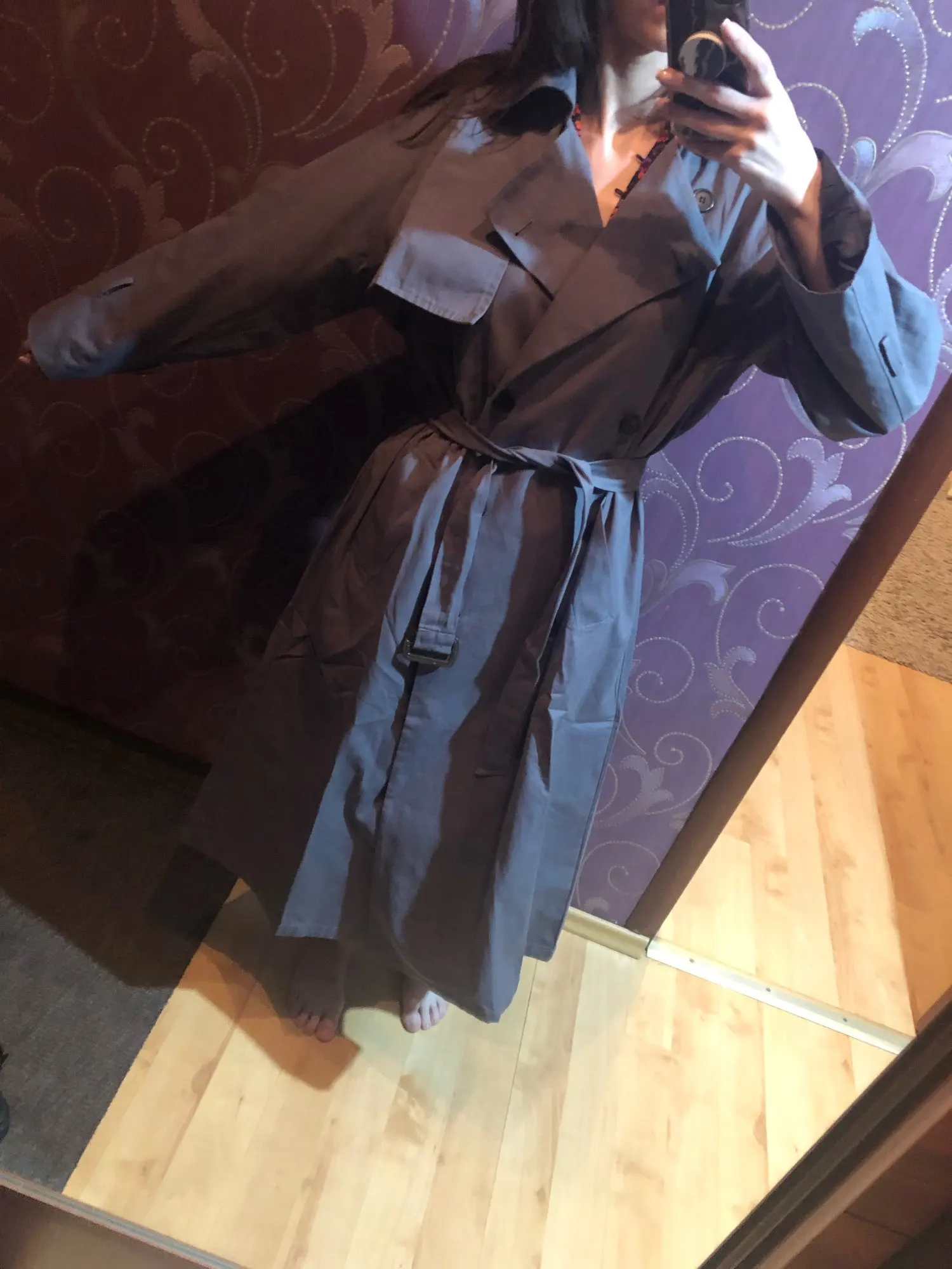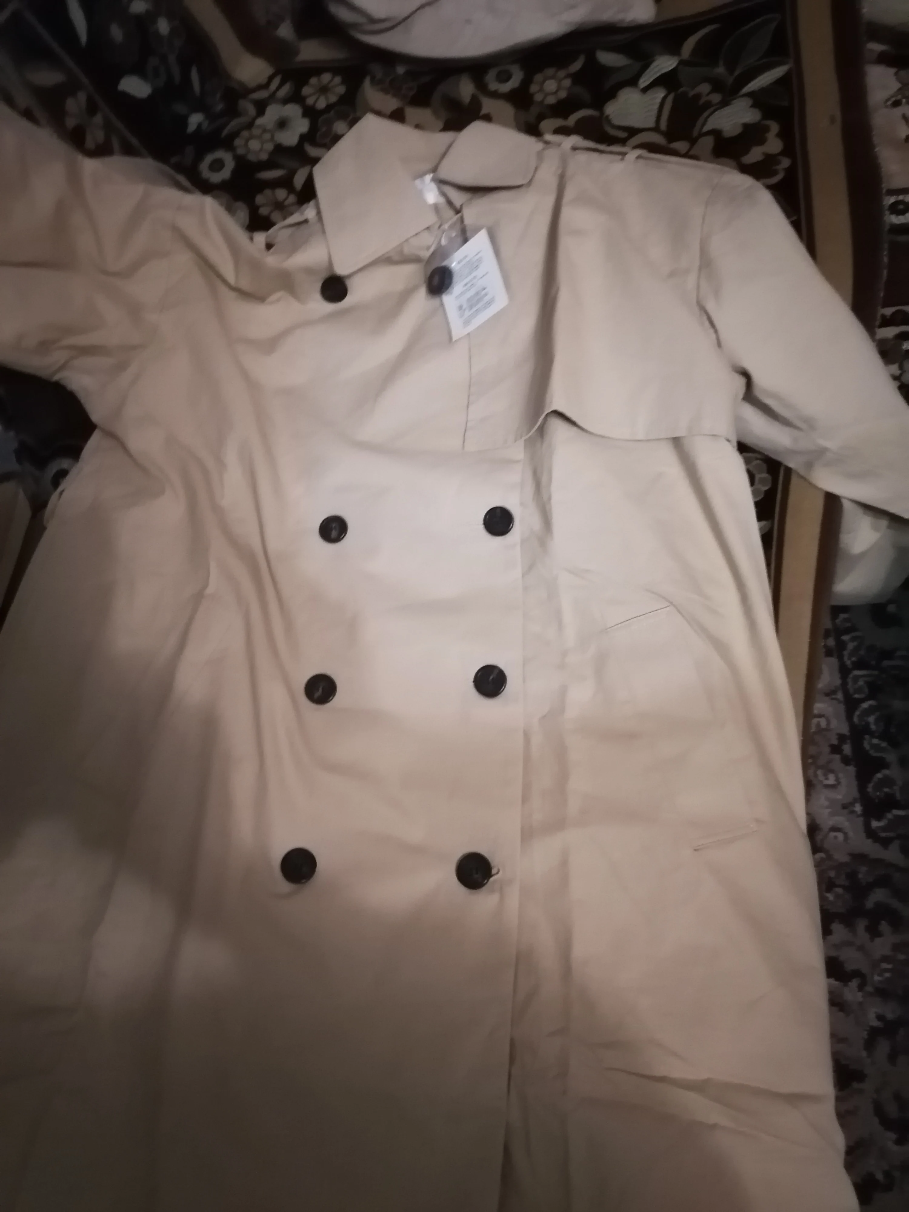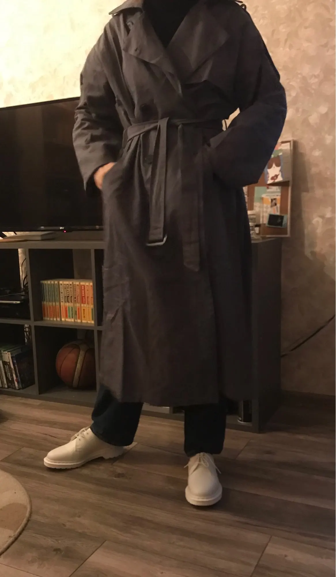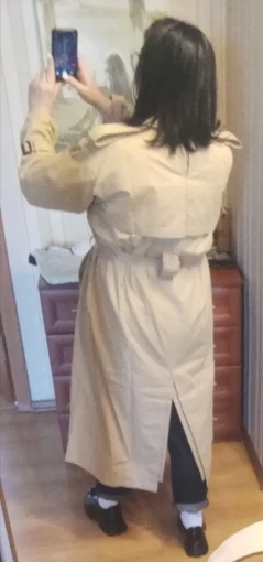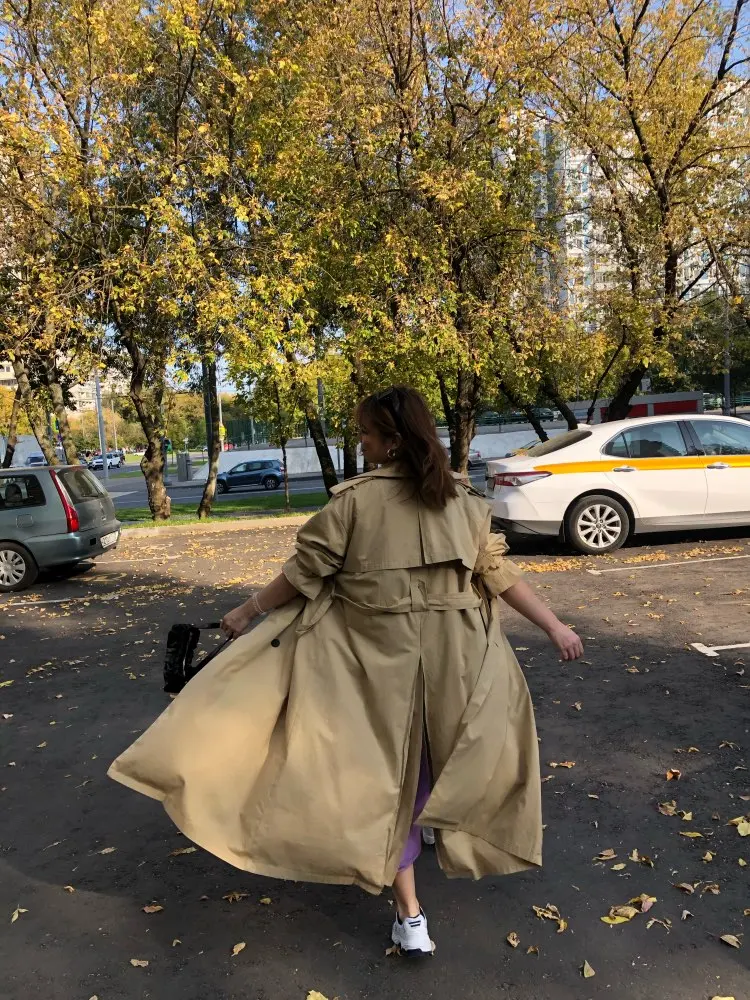 Отличный тренч! В жизни выглядит реально как с фоток, главное - хорошенько его отпарить. Подобные в Москве в магазинах стоят от 7000₽, а если и есть схожие по цене, то они короткие. Он, конечно, совсем не теплый, но вместе с курткой Юникло под низ можно ходить до +7 градусов. Очень сильный вырез сзади, который расходится, но это ничего, я его сама зашиваю.