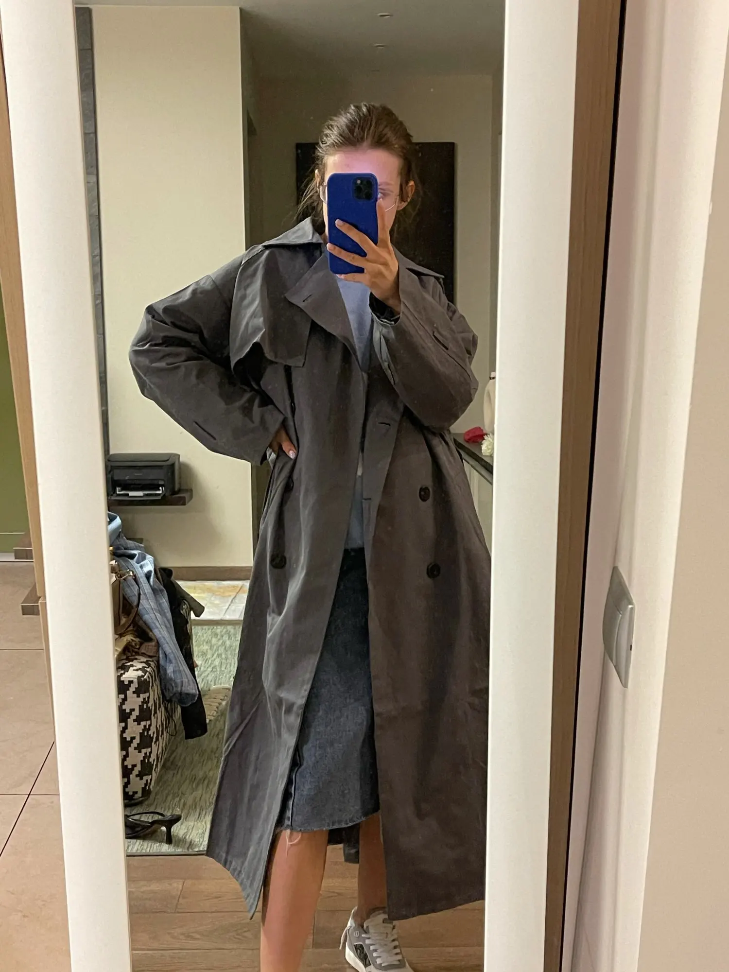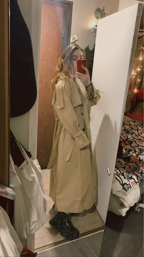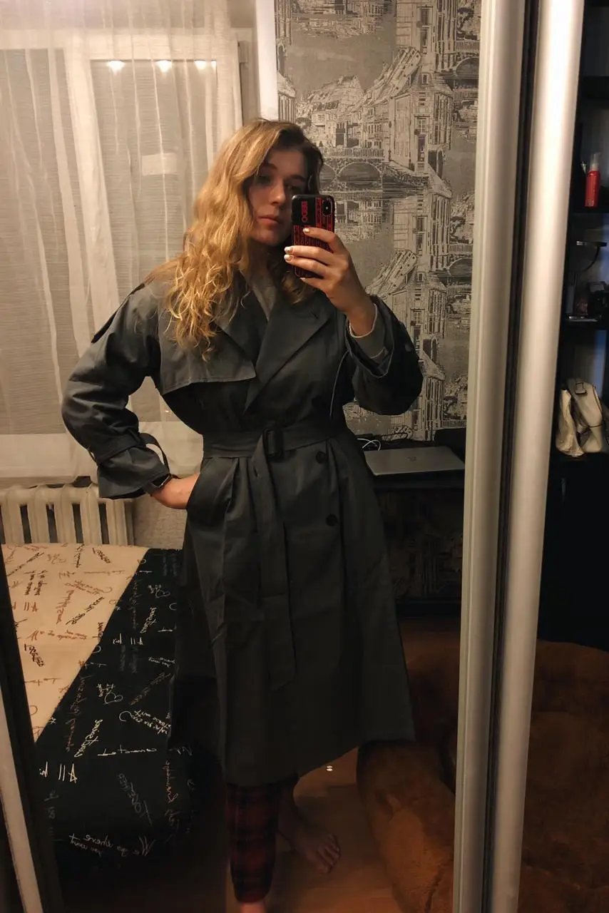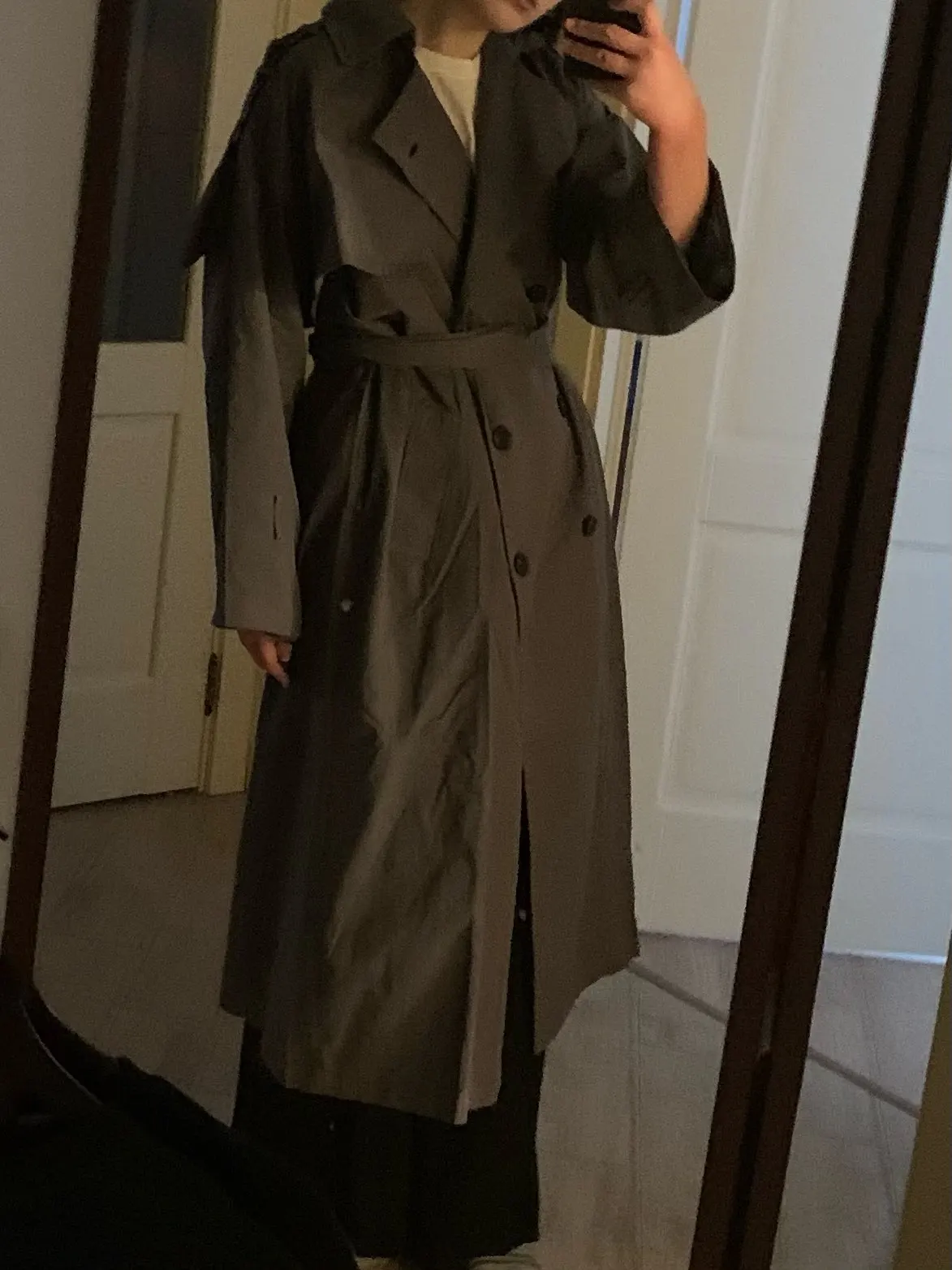 Тренч волшебный. Искала максимально длинный, чтоб прям почти до земли. Пришел за пару недель. Параметры 88/62/102, рост 170. Сидит свободно, мб чуть оверсайз, не сковывает