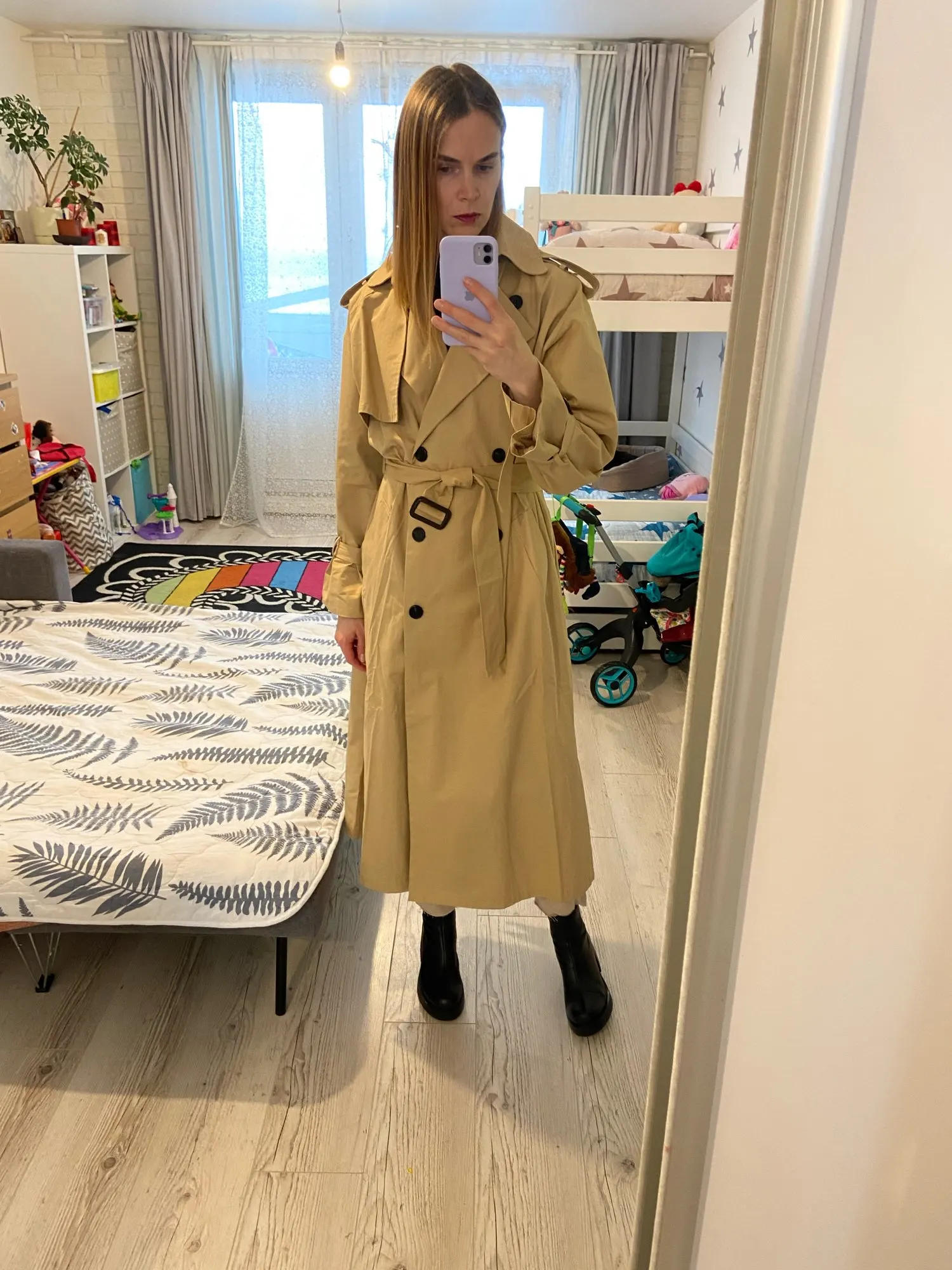Божечки, он ИДЕАЛЕН, просто потрясающий тренч! Доставка около двух недель. Ткань, цвет и качество пошива на высоте. Отдельно хочу отметить крой рукава и длину. Я очень довольна, спасибо!