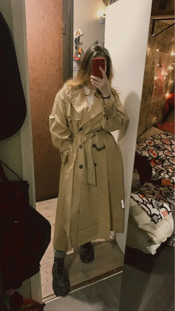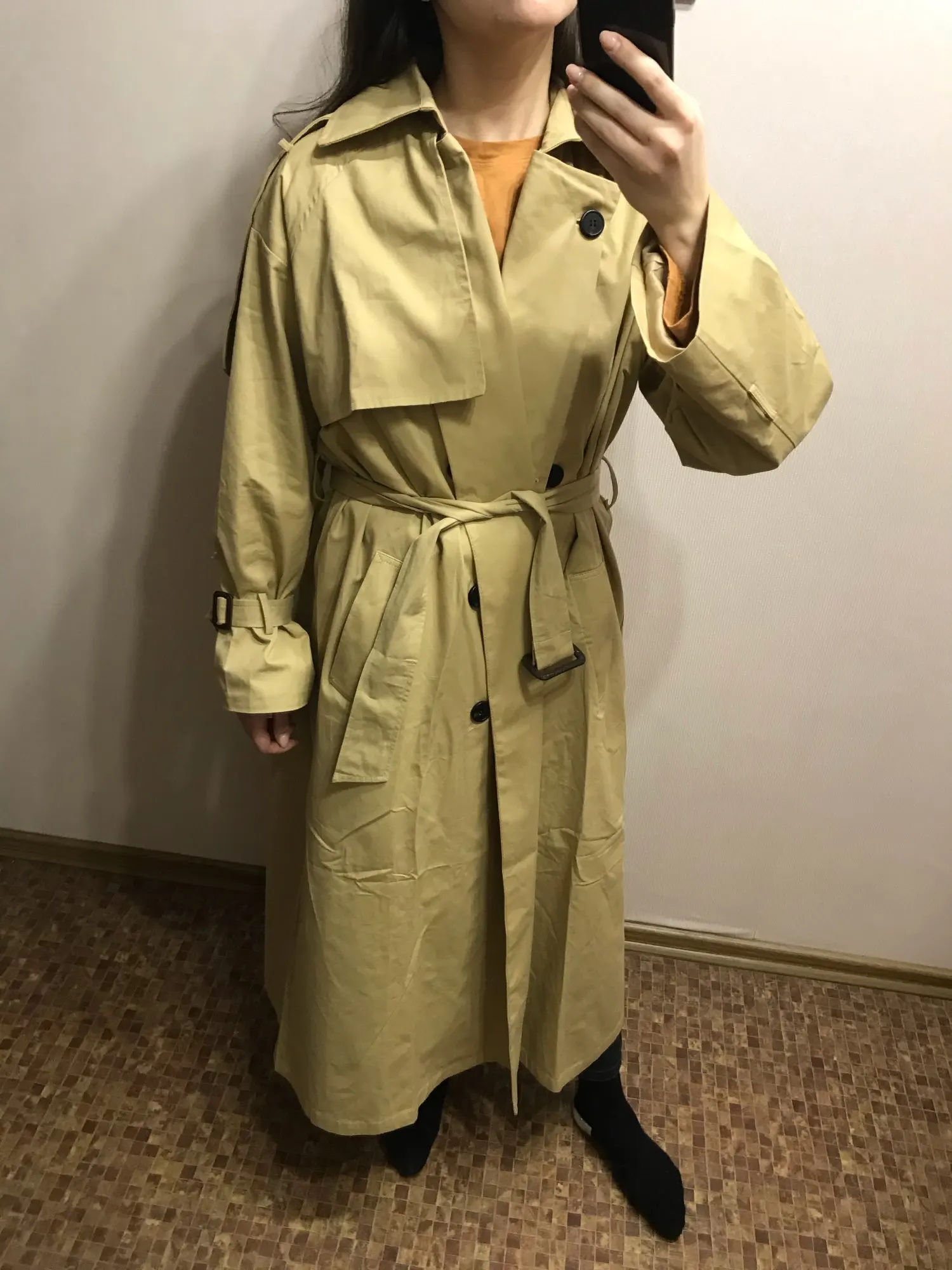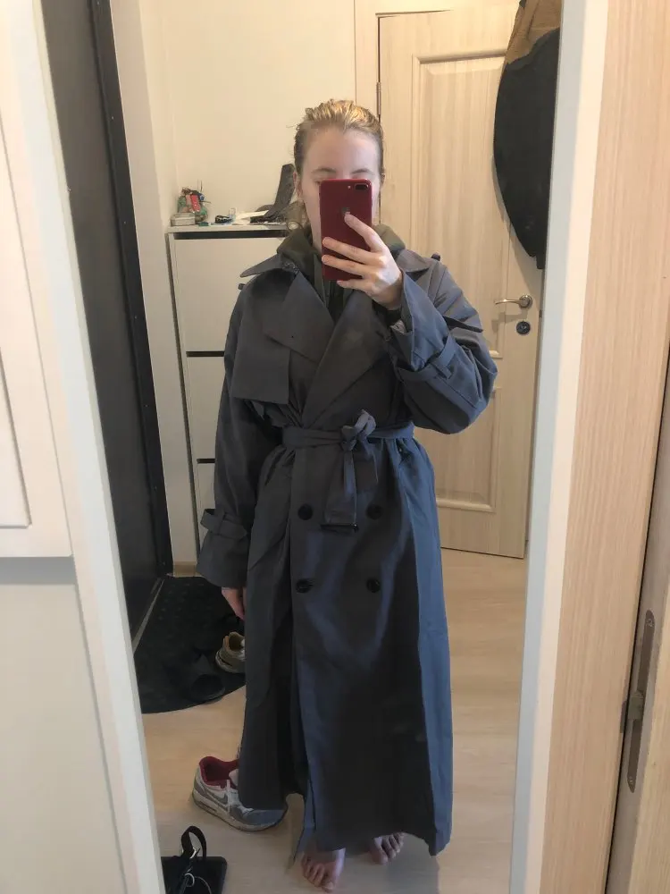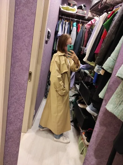 Я в восторге! Такое как я и хотела. Ношу размер s и xs. Заказала М, потому что хотела оверсайз, но без фанатизма. У меня рост 162, а тренч сантиметра 3 до пола не достаёт!! Просто идеально в пол!!!Оказалось то что надо!!! Не пахнет, швы ровные, ни одной лишней ниточки не торчит. Качество очень хорошее. Если кто-то сомневается брать или не брать, не сомневайтесь, берите!!!! За такую цену это просто подарок!!! Наверное лучшая моя покупка на али!!!