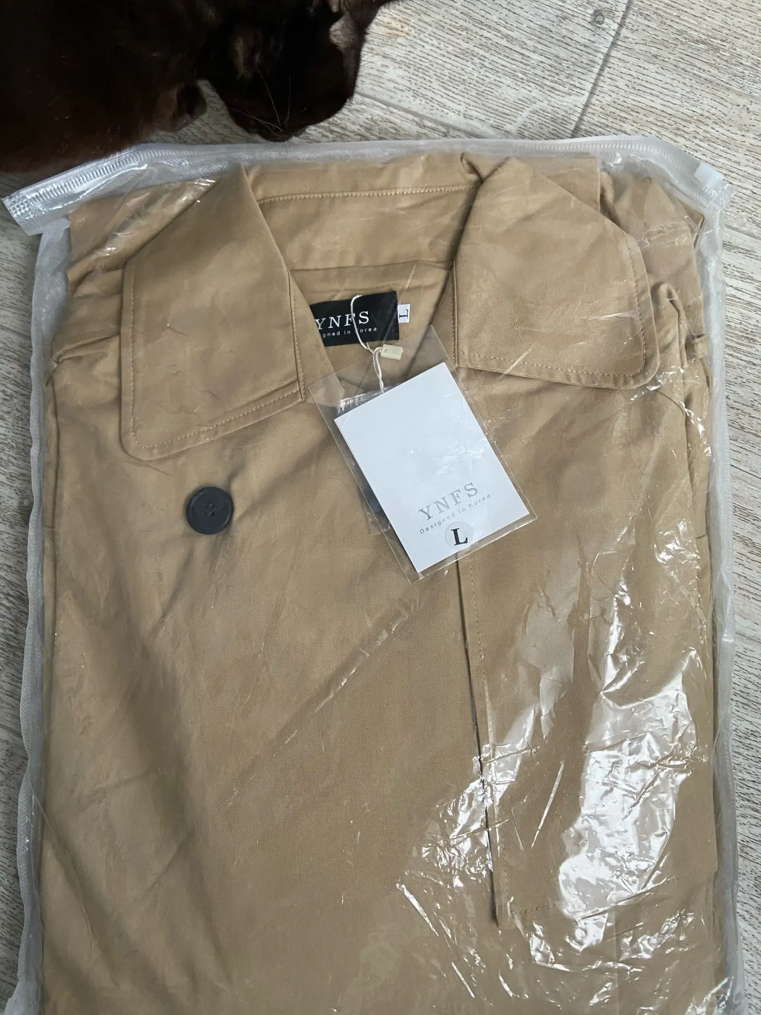 Тренч приличного качества, пришел хорошо упакованный в зип-пакете. Доставка меньше месяца. Покупкой давольна, хотя зря понадеялась на отзывы, все фигуры разные. На 54 российский можно было взять на размер больше, думаю, было бы интереснее, но и так неплохо, но нет ощущения оверсайз. К покупке рекомендую.