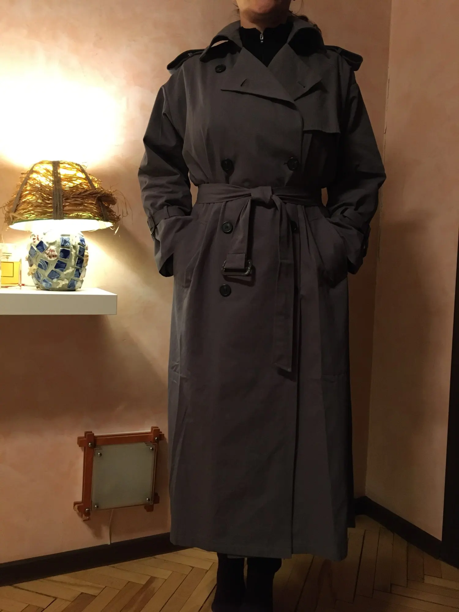 Выглядит качественно. Дошел быстро. С размером не очень понятно, я никогда до этого не носила тренч. Взяла L на российский 44 и рост 175, хотелось чтобы было подлиннее. Сначала плащ показался очень большим, но если подпоясать и закатать рукава как на модных фотках, то вроде красиво и как раз то, что надо)