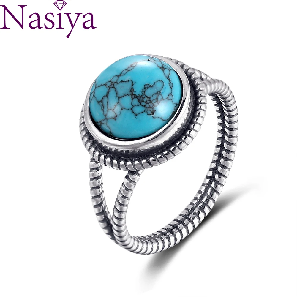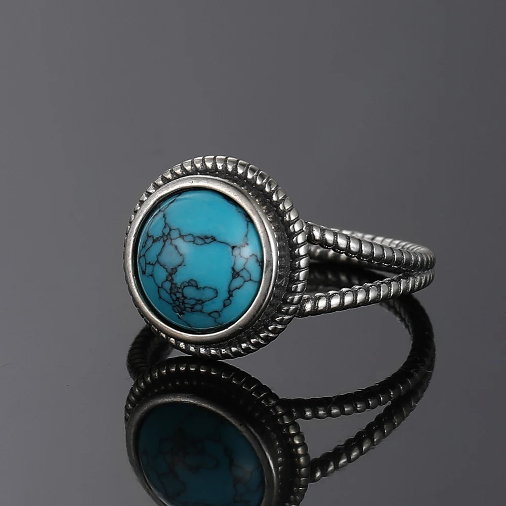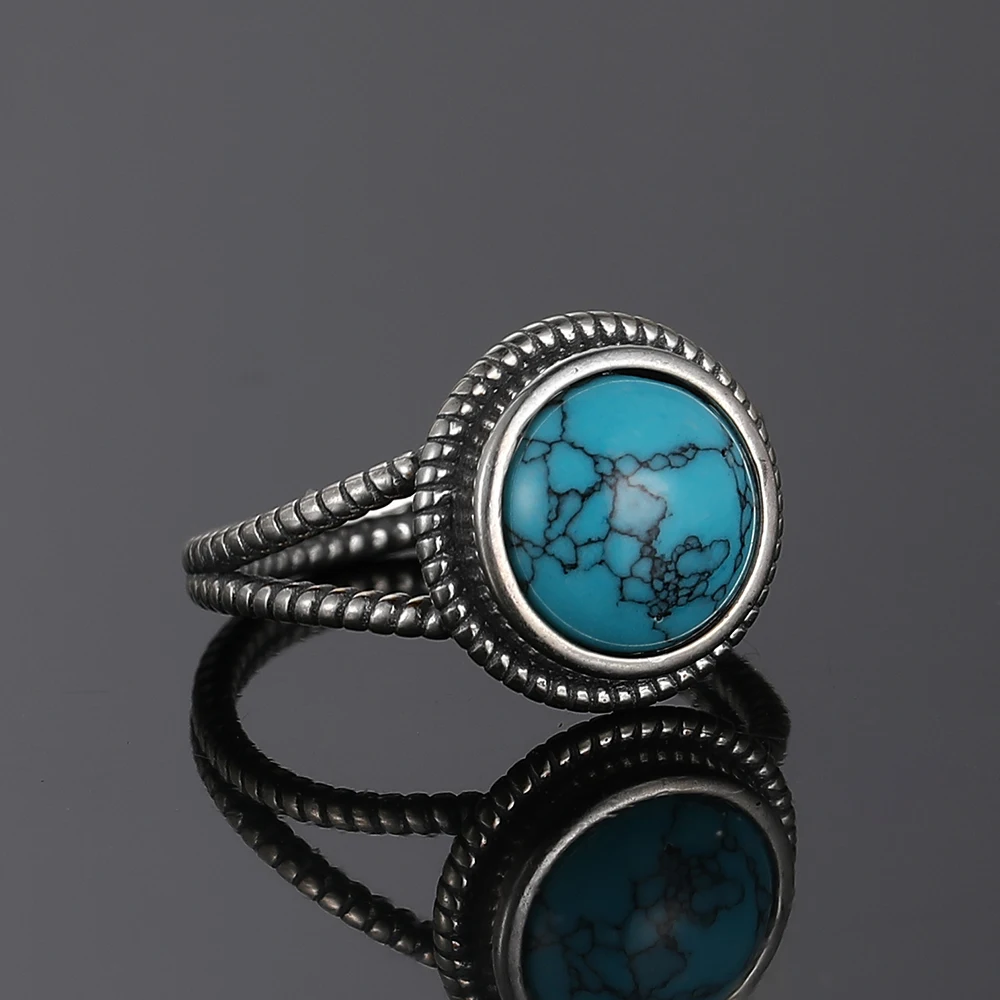 Кольцо из стерлингового серебра S925 пробы, 10 мм, круглый натуральный бирюзовый, женское кольцо для свадьбы, вечеринки, юбилея, ювелирное изделие, винтажный стиль