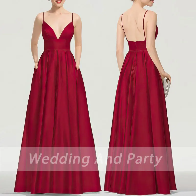 Женское Формальное вечернее платье длинный сатиновый плащ V образным вырезом трапециевидной формы без рукавов красные с черным свадебные туфли вечерние платье размера плюс торжественное платье