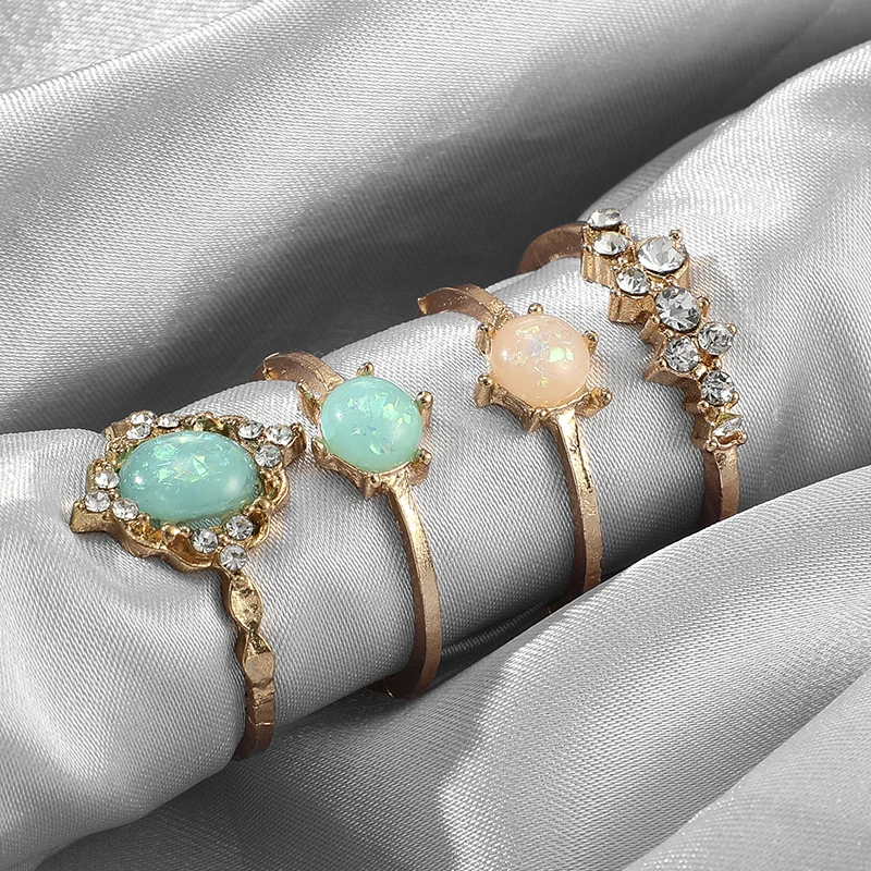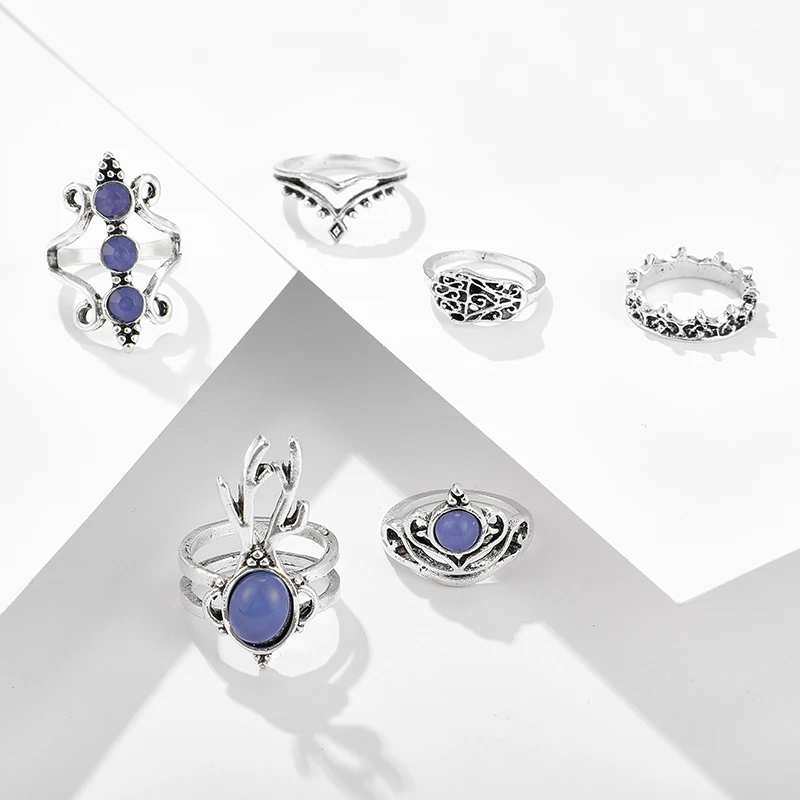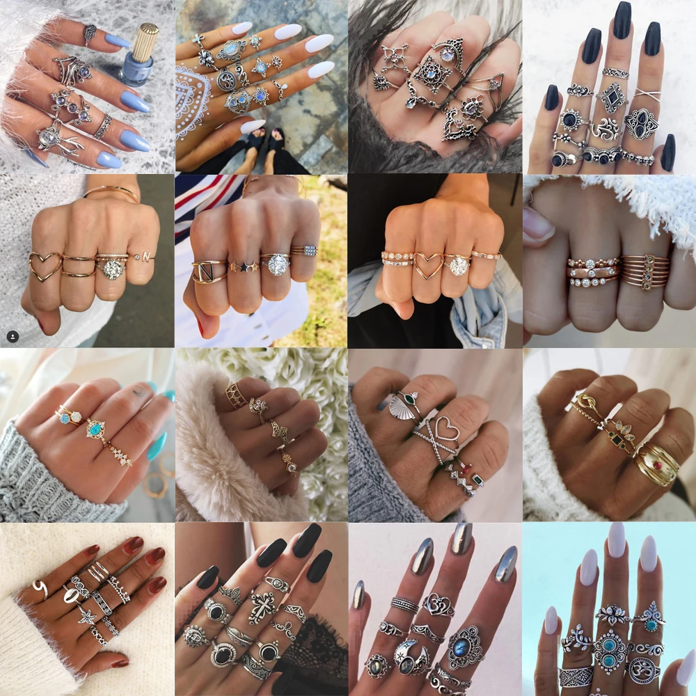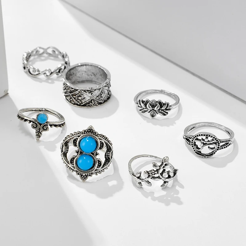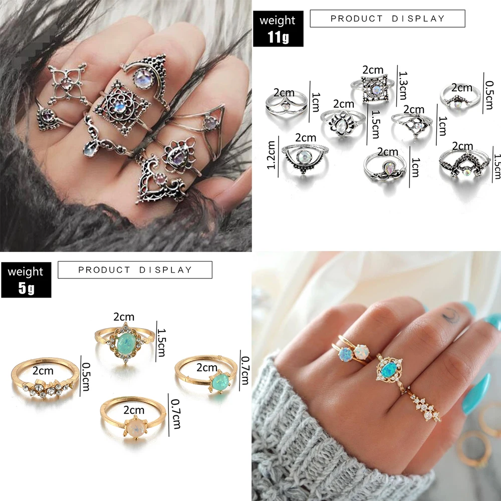 Набор Колец Tocona в виде лотоса и месяца для женщин, Винтажные Ювелирные украшения с декором в виде ракушки сердца и кристаллов, цвет серебро, свадебная бижутерия