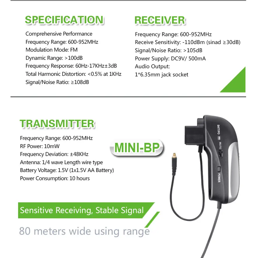 Акустическая Беспроводная микрофонная система PR-8AT-10 + MINI-BP U...