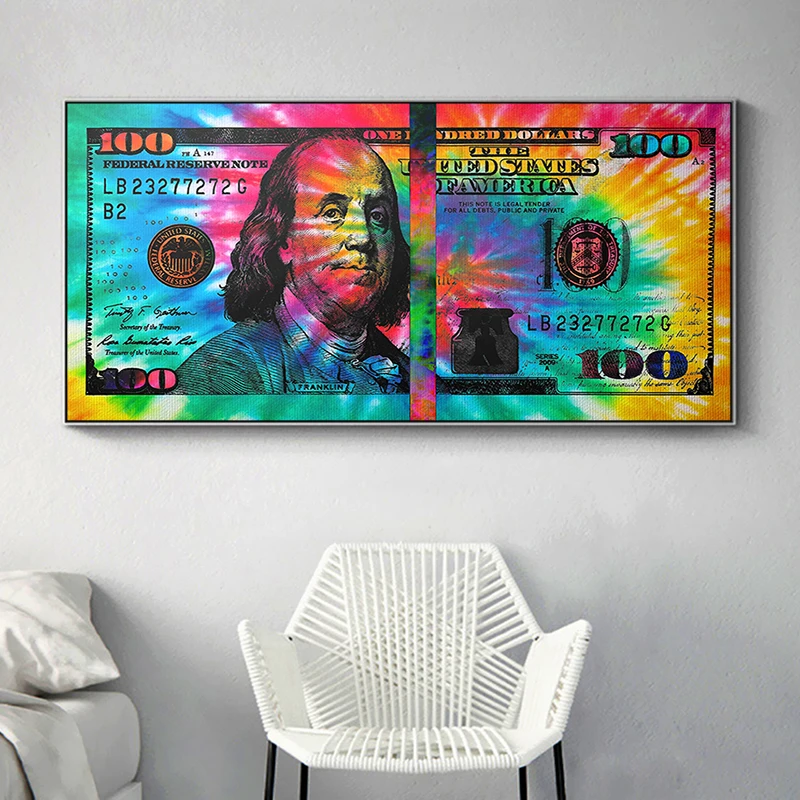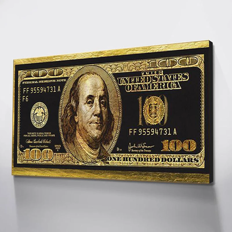 Картина DDHH на холсте, с изображением 100 доллара, без рамки