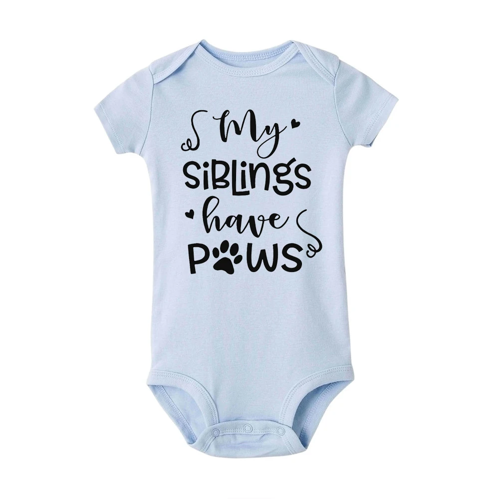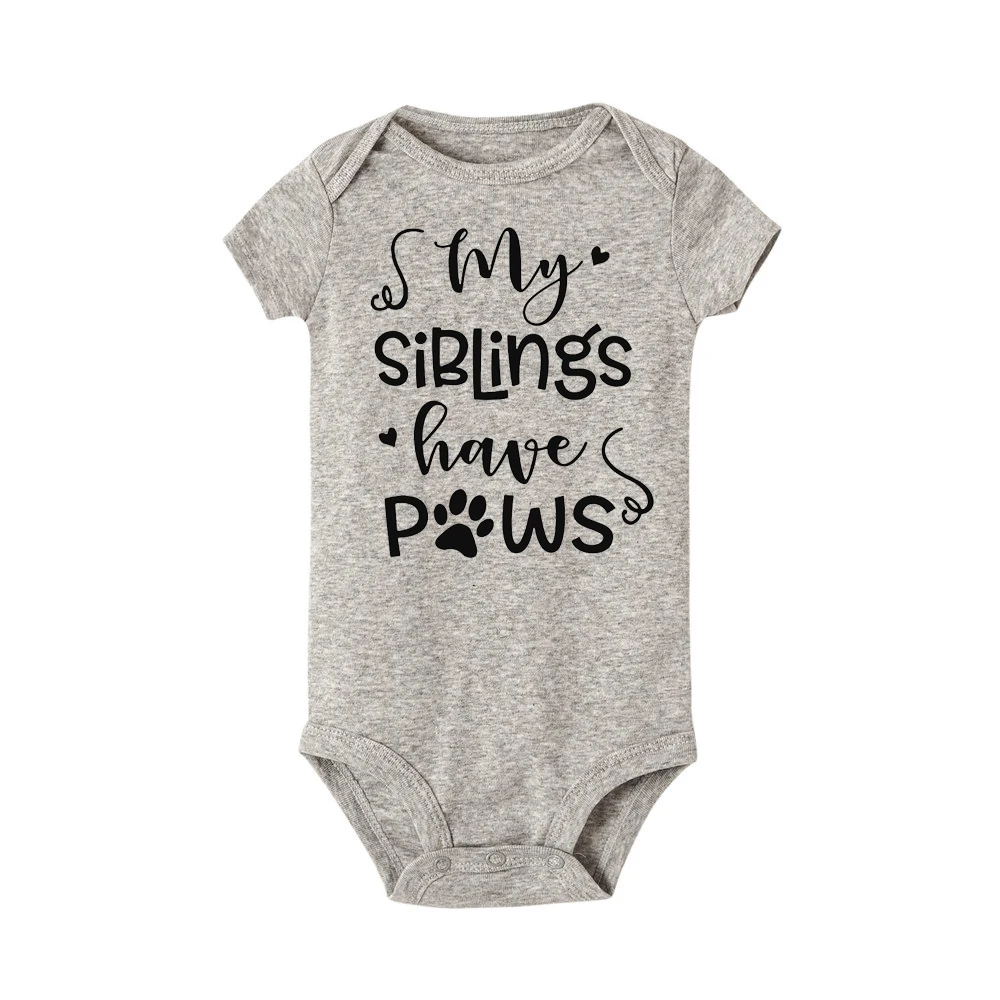 Комбинезон с короткими рукавами и надписью «My sibling have paws» для новорожденных мальчиков и девочек; Комбинезон; Детская летняя одежда