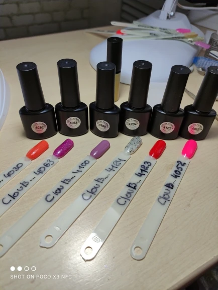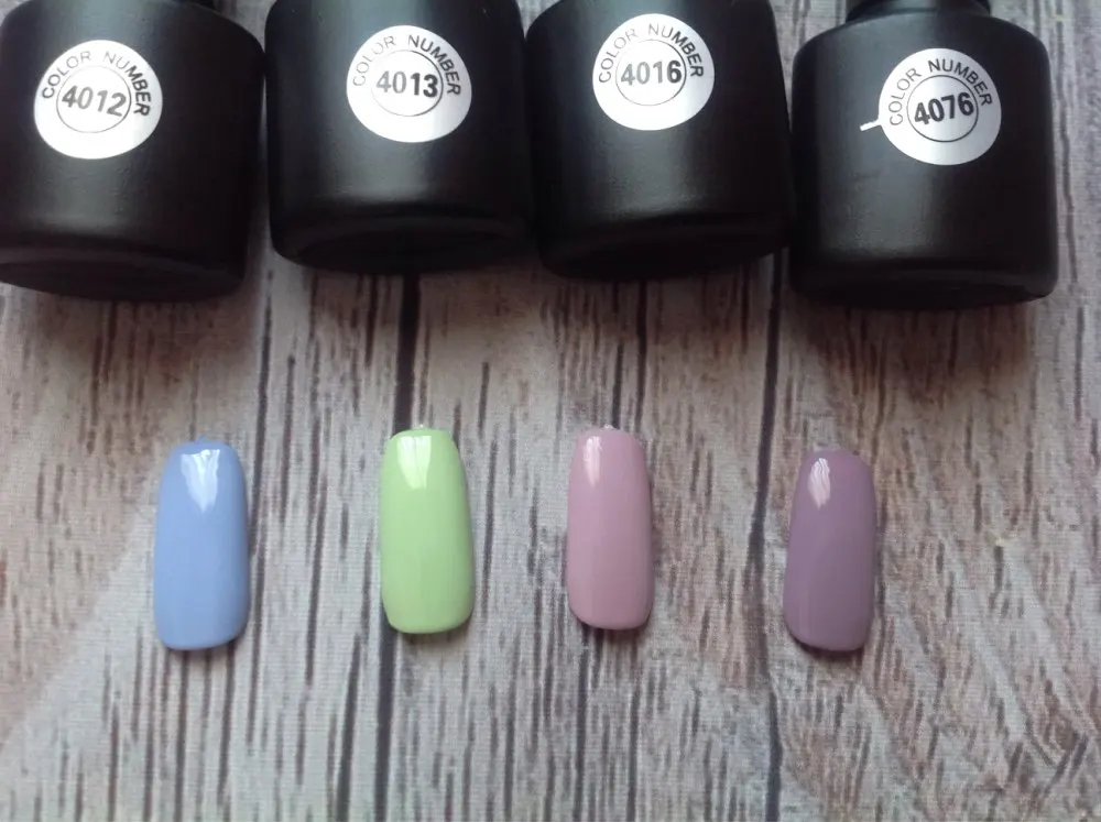 Лаки хорошие, плотный цвет, не полосит. У кого слабая лампа как у меня надо будет сушить долго, опять же из за того что цвет плотный. И все вроде хорошо, но половина цветов других оттенков, и вроде допустим заказала серый и пришёл серый, но оттенок сильно отличается. Но цвета лично мне понравились