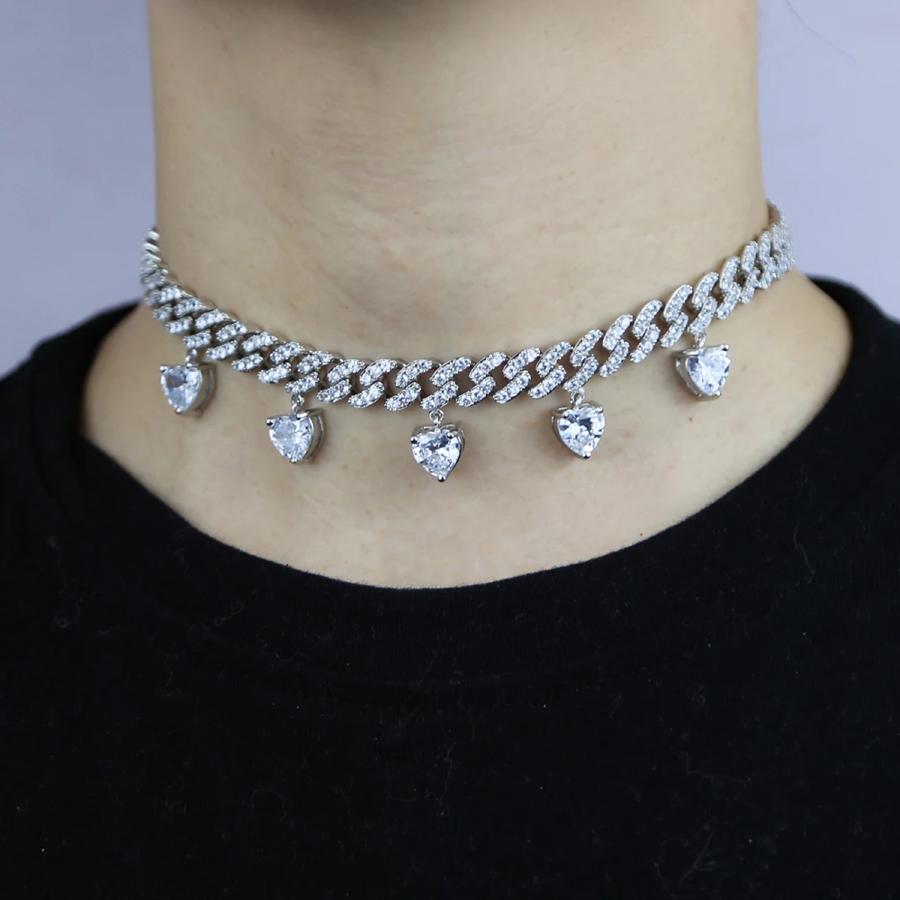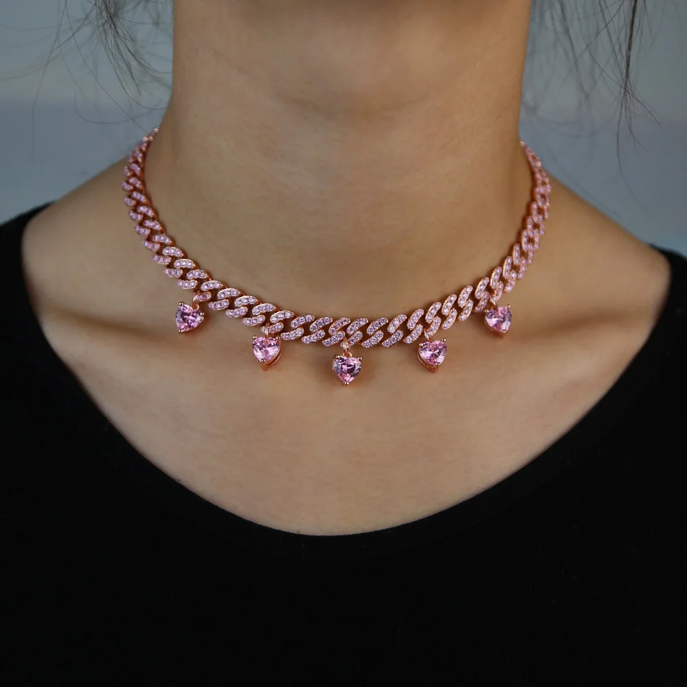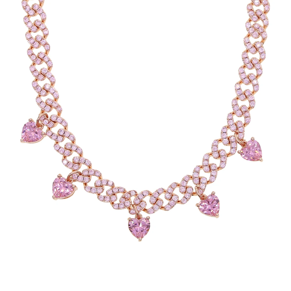 Ожерелье с кубинским сердцем 9 мм, изящное ожерелье со сверкающим фианитом, цвет розового золота с розовым фианитом, роскошная бижутерия, модный хип-хоп Для Wonem