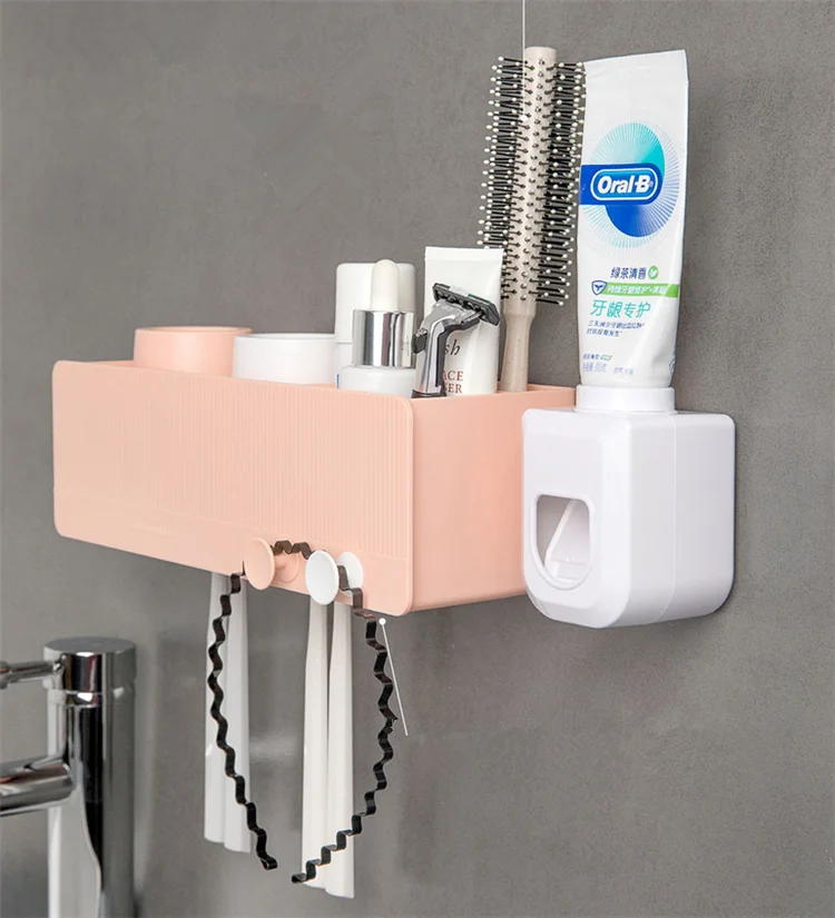 Характеристики:Материал: АБСЦвет: синий, белый, розовыйРазмер держателя зубной щетки: 26,5*9,5*8,5 см (около 360 г)Размер пресс для зубной пасты: 9,5*6*6,5 см (около 95 г)