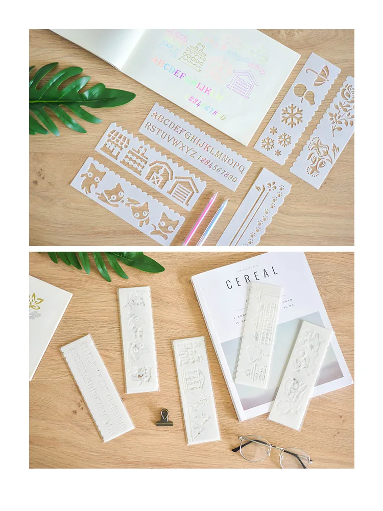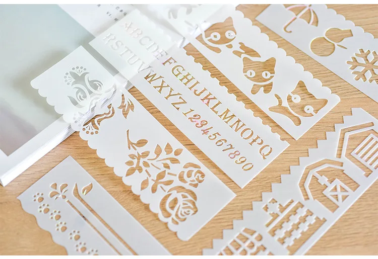 8 шт. милые художественные графические символы Рисование шаблон тема кружевная линейка для студентов детей Рисунок трафарет линейка канцелярские принадлежности Декоративные Инструменты
