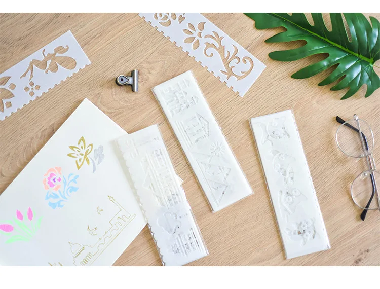 8 листов DIY инструмент для рисования пустая кружевная линейка пого...