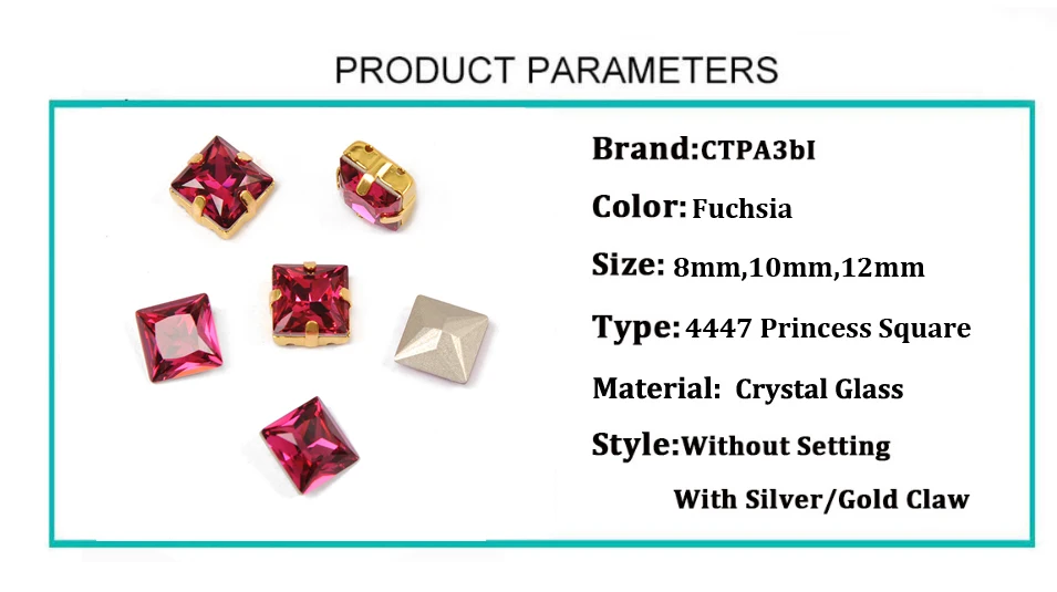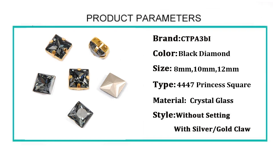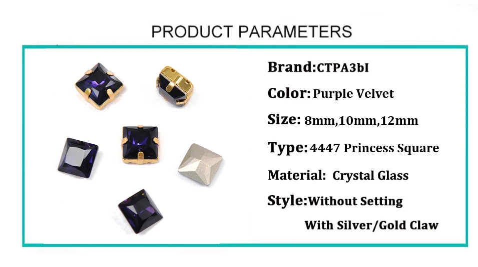 CTPA3bI Кристалл всех цветов принцесса квадратный стеклянный камень Пришивные Кристаллы Стразы Драгоценности бусины с коготь DIY аксессуары для одежды