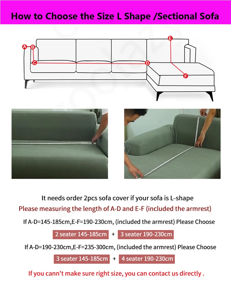 Если ваш диван типа L или углов в сочетании с 2 частями отдельно, вам нужно заказать 2 шт покрытия для него. Этот чехол для дивана подходит для дивана, который имеет глубокий зазор между сидением со спинкой и подлокотником. Маленькая тканевая полоска, которую вы используете, чтобы держать на месте, нажмите их вниз и под насколько вы можете, будет держать на месте.