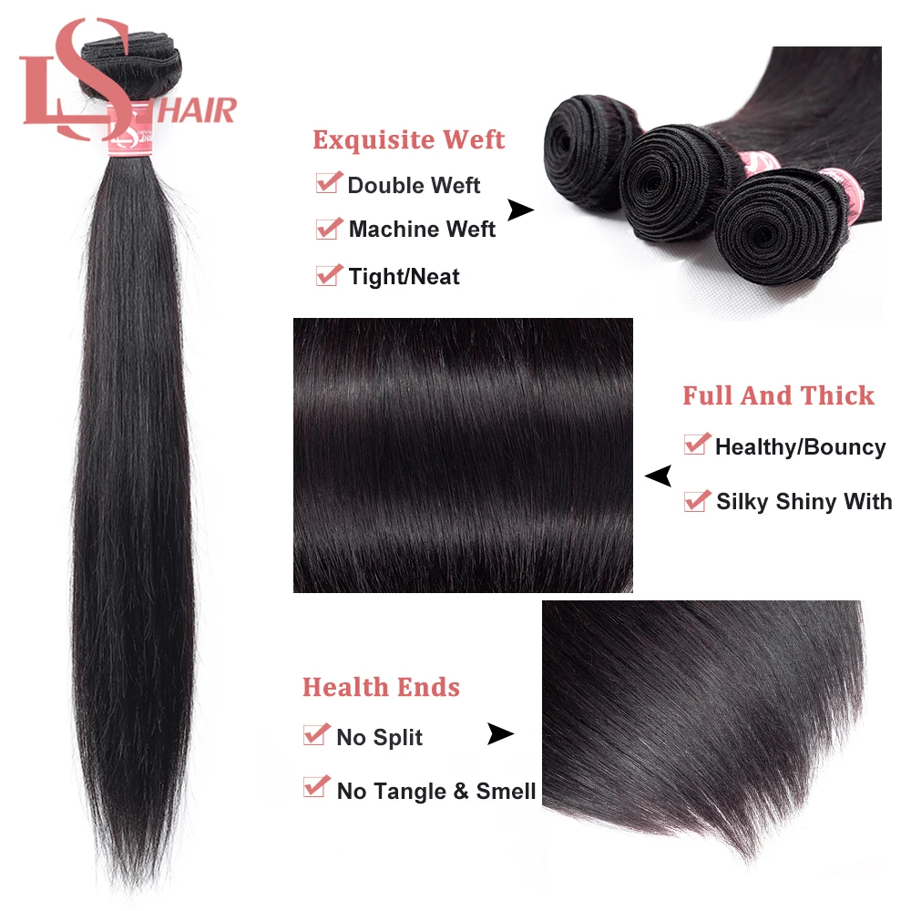 LS прямые пряди волос с фронтальным Remy, человеческие волосы, пряди с закрытием, бразильские волосы, 2 пряди с фронтальным