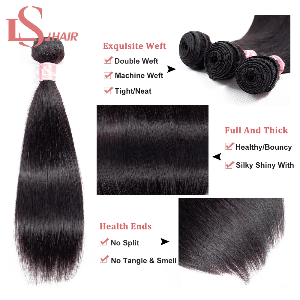 Бразильские пряди волос LS, прямые пряди с фронтальными человечески...