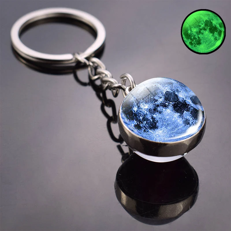 Светящийся стеклянный шар с Луной, брелок для ключей Galaxy, солнеч...