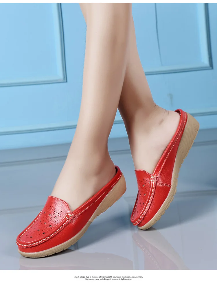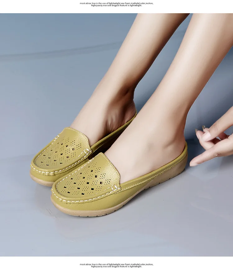Туфли женские из натуральной кожи, перфорированные лоферы, мягкая обувь для мам, плоская подошва, Мокасины, Размеры 35-41, летняя обувь
