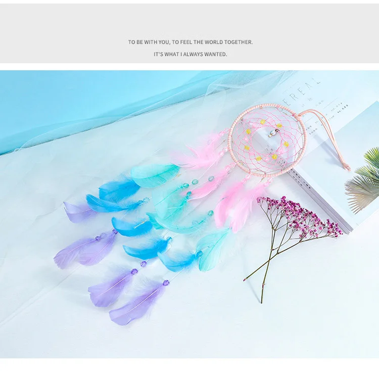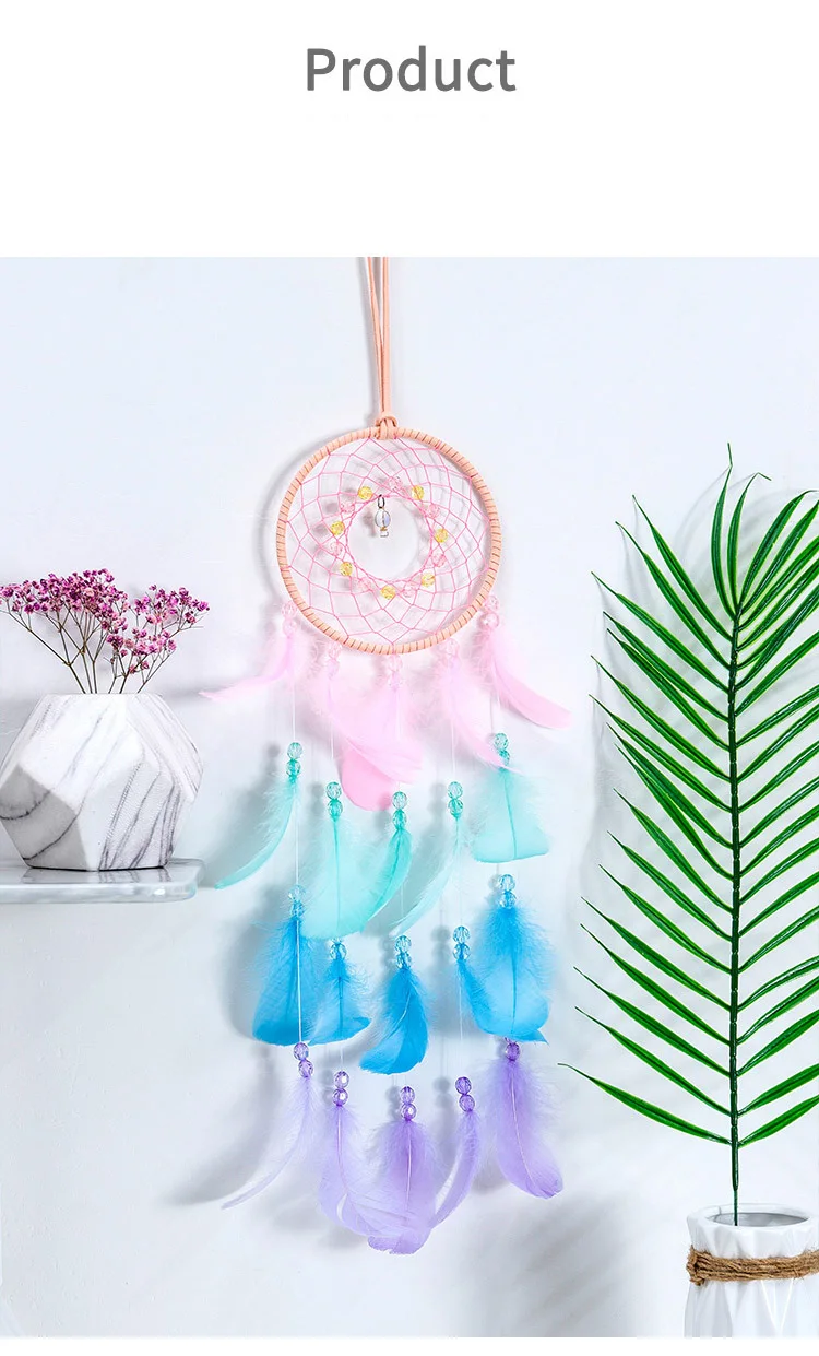 Красочный Ловца снов с истинными перьями, загорается, креативный Ловца снов для девочек, практичные специальные подарки на день рождения, украшение для дома