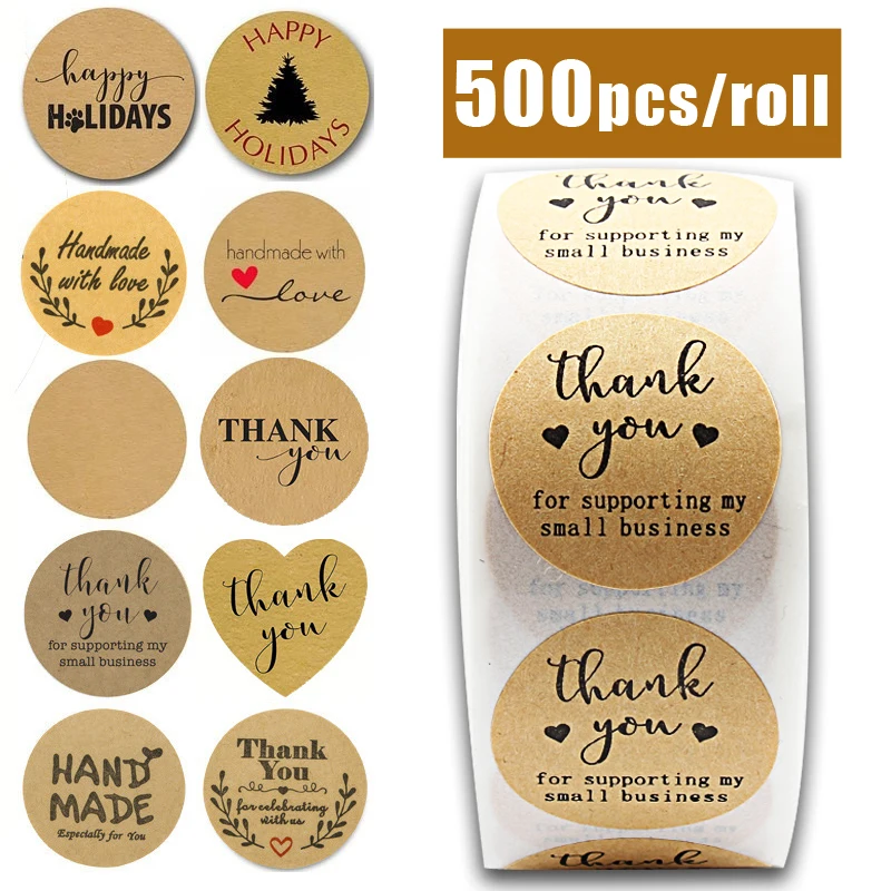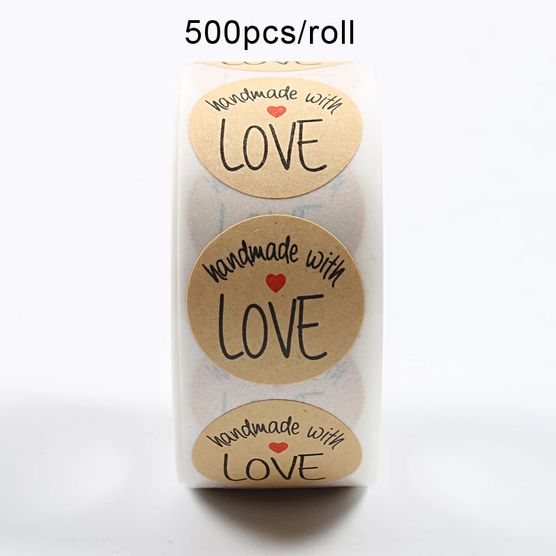 Наклейка ручной работы, 500 шт.рулон, ярлык из крафтовой бумаги, Круглый Пищевой стикер для кофе, декоративный пищевой стикер для конверта в подарок