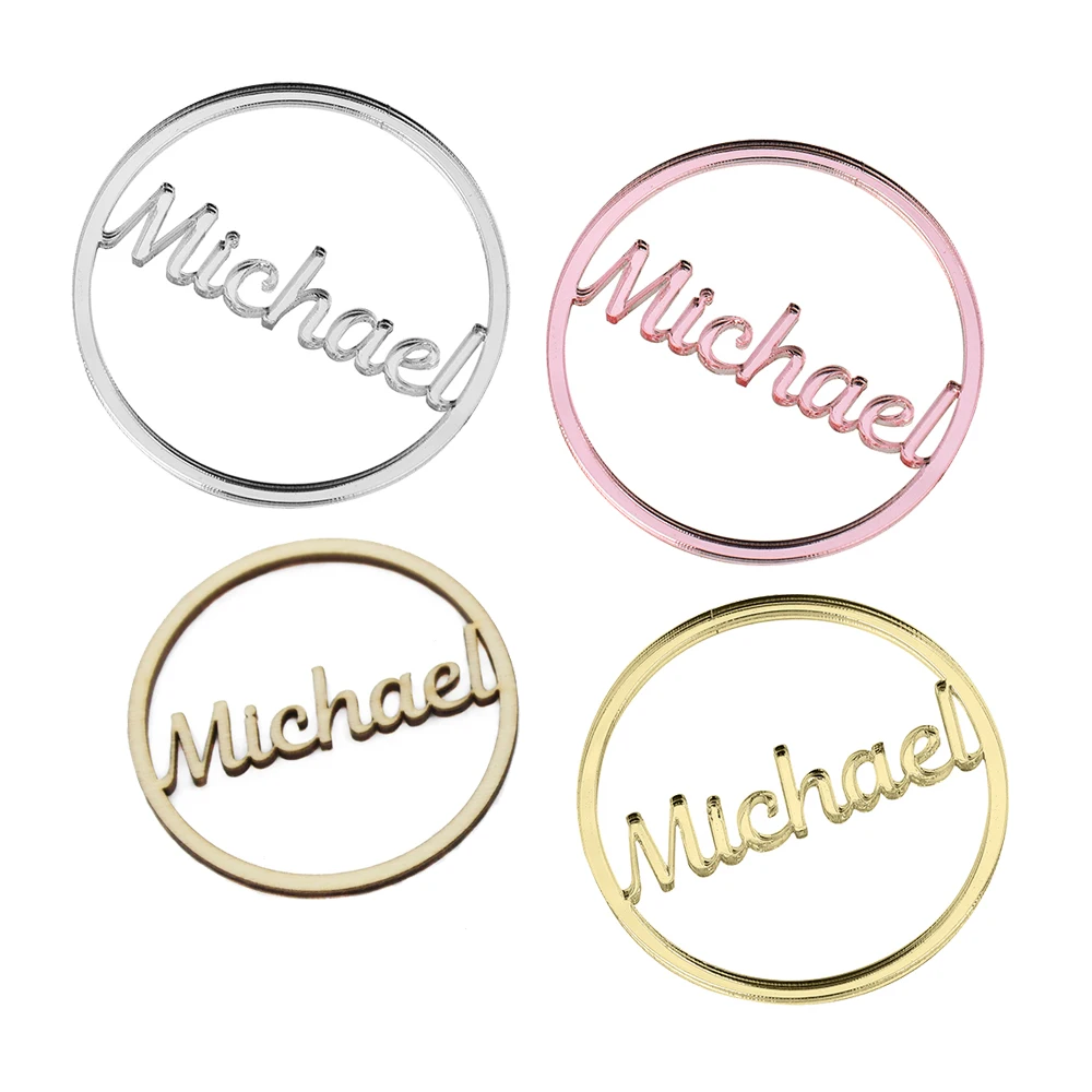 50 шт. персонализированный Свадебный декор лазерная резка круг Имя Логотип акриловое зеркало имя бирки буточек подарок Детские сувениры украшение