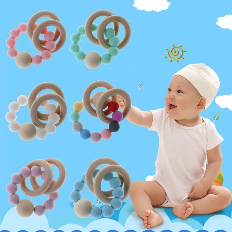 Детские браслет для прорезывающихся зубов, игрушки для прорезывания зубов, бусины для ухода за новорожденными зубами, ювелирные изделия для снятия боли, силиконовые деревянные кольца для младенцев