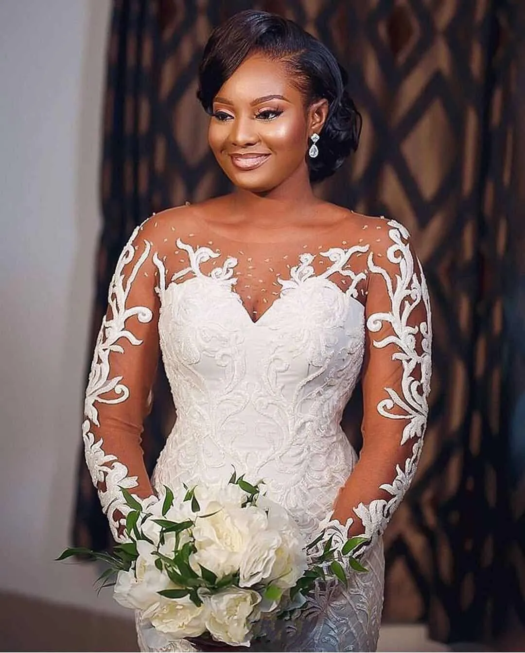 Кружевное Свадебное платье E JUE SHUNG, белое, с длинным рукавом