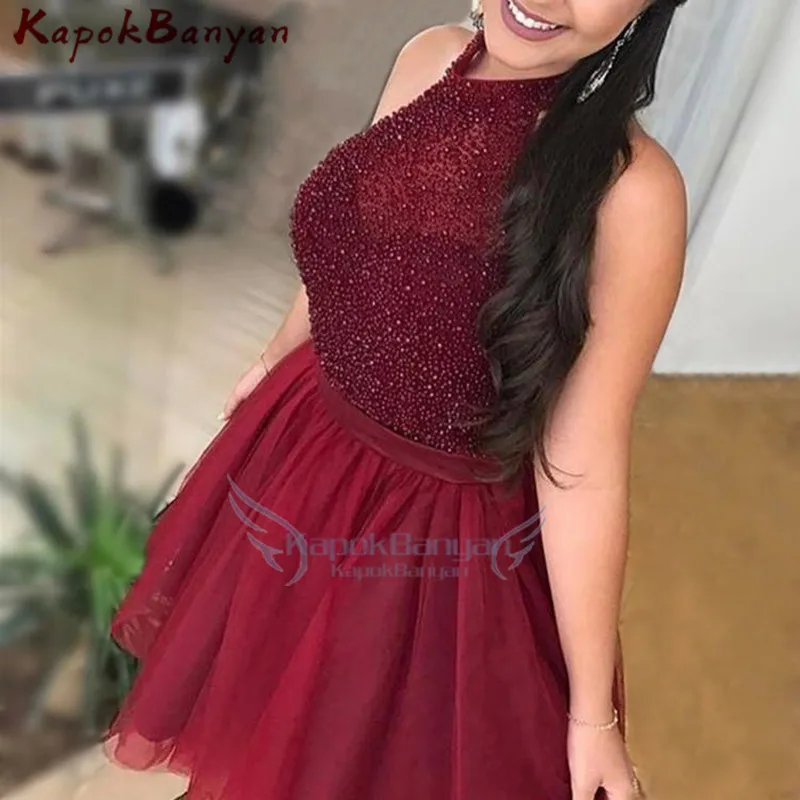 Короткое платье для выпускного вечера, с бисером, без рукавов, с открытой спиной, длиной до колена, из фатина