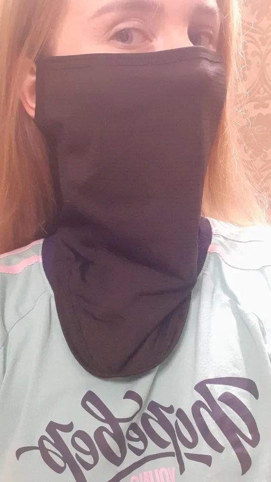 Маленькая бесполезная фигня. Очки в ней потеют, смысла носить нет. Пошита нормально, посторонних запахов от маски нет. Материал тянется, за ушами не натирает. Доставили быстро,с продавцом не общался.