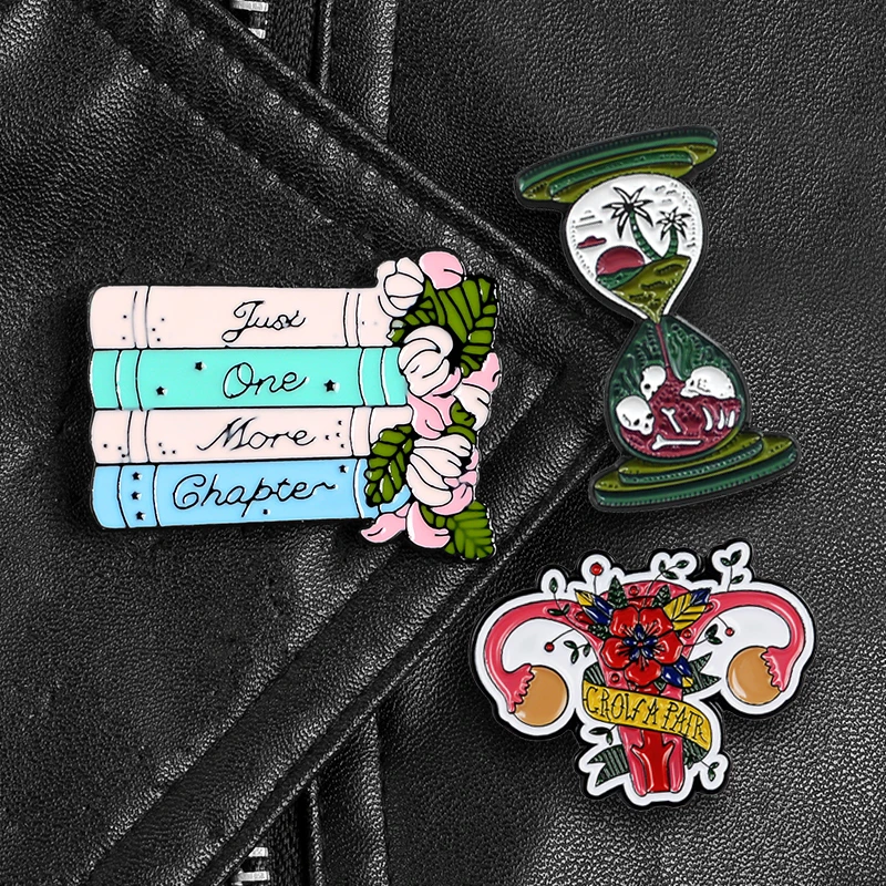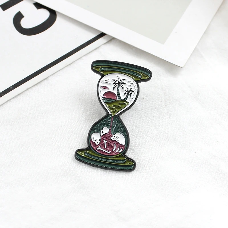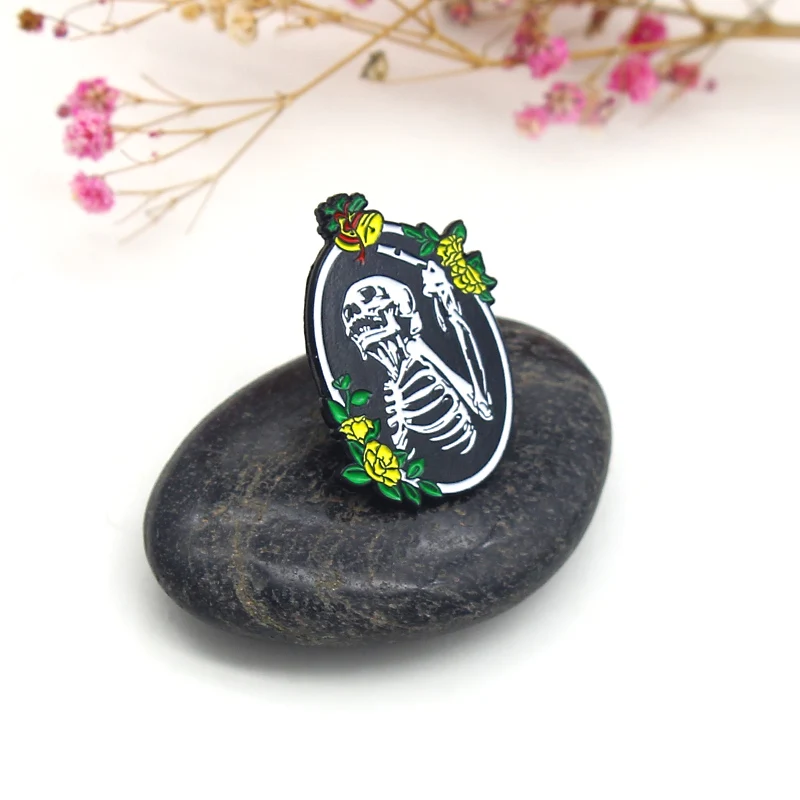 Эмалированная брошь в виде цветов, скелета, костей, черепа, песочных чашек
