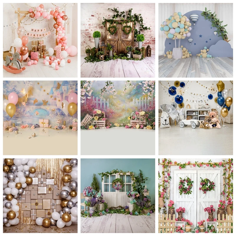 Фон для студийной фотосъемки с изображением воздушных шаров и цветов