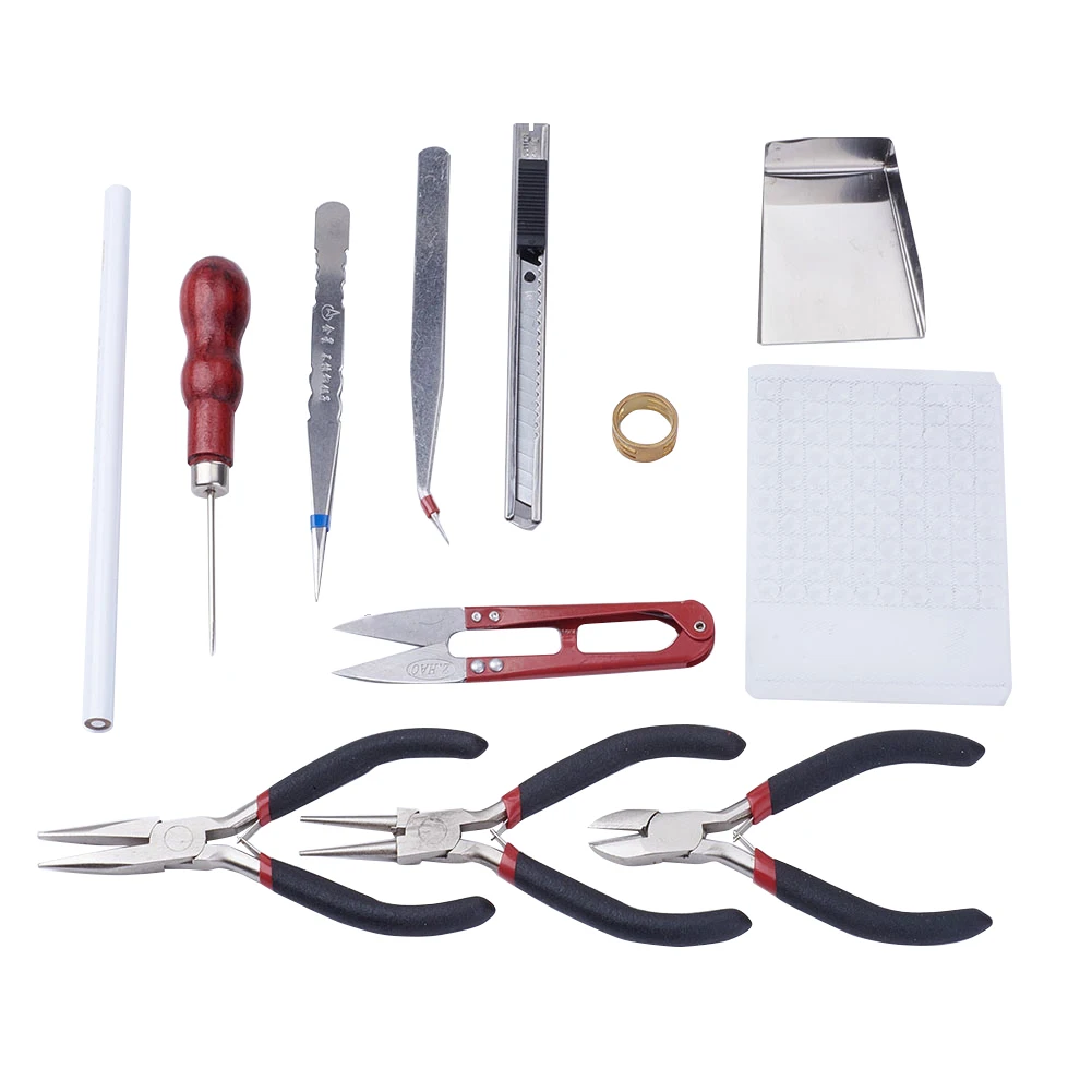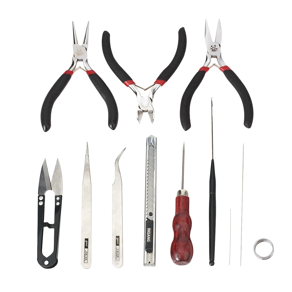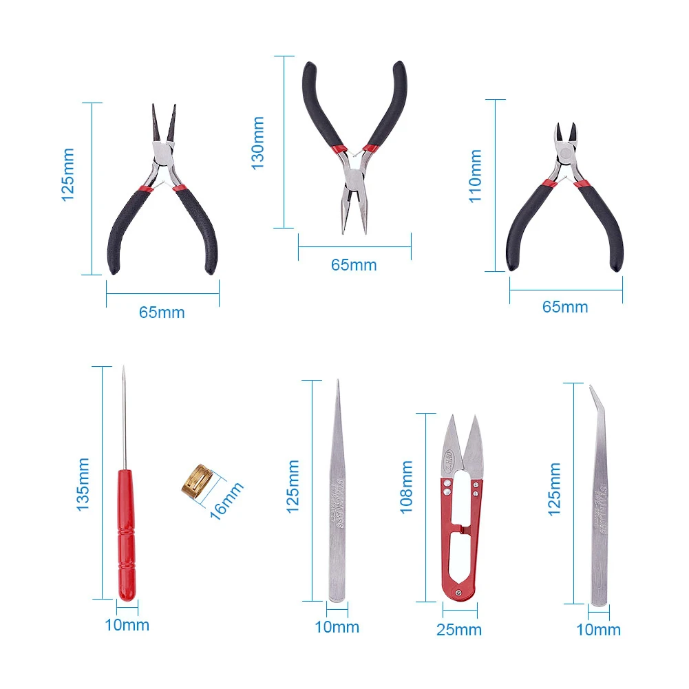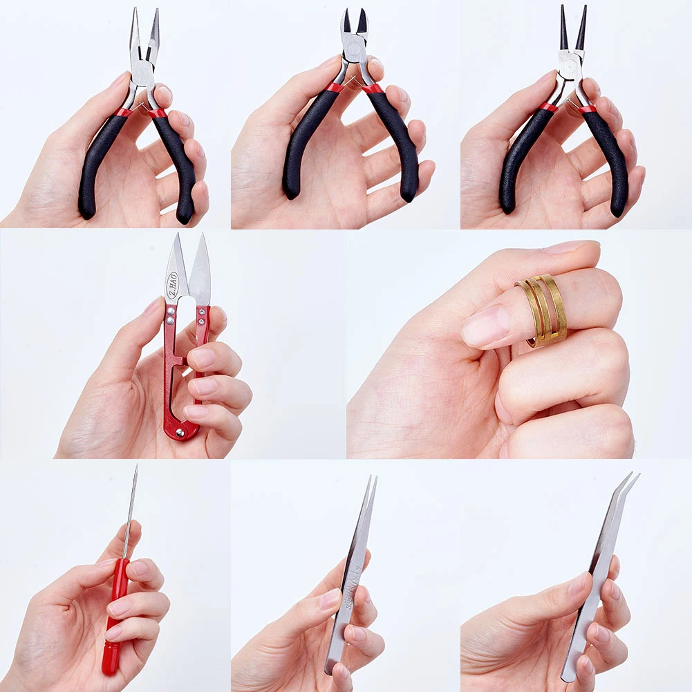 Инструмент для изготовления ювелирных изделий, кусачки для проволокиплоскогубцы с круглым носом, ножницы, рулетка, пинцет для бисероплетения, шило, 1 комплект