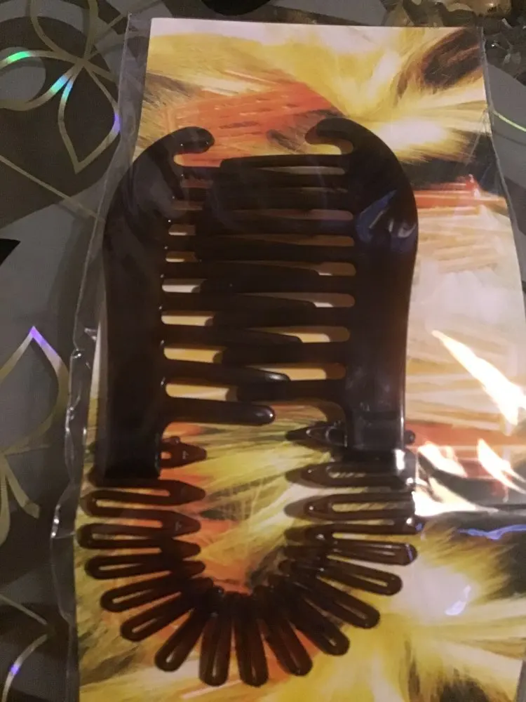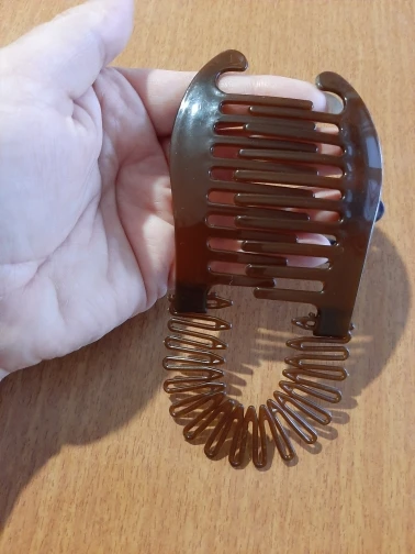 Заколка интересная. Держится на волосах за счёт плотного прилегания зубцов. Другой застёжки нет. Для прически в неопрятном стиле .