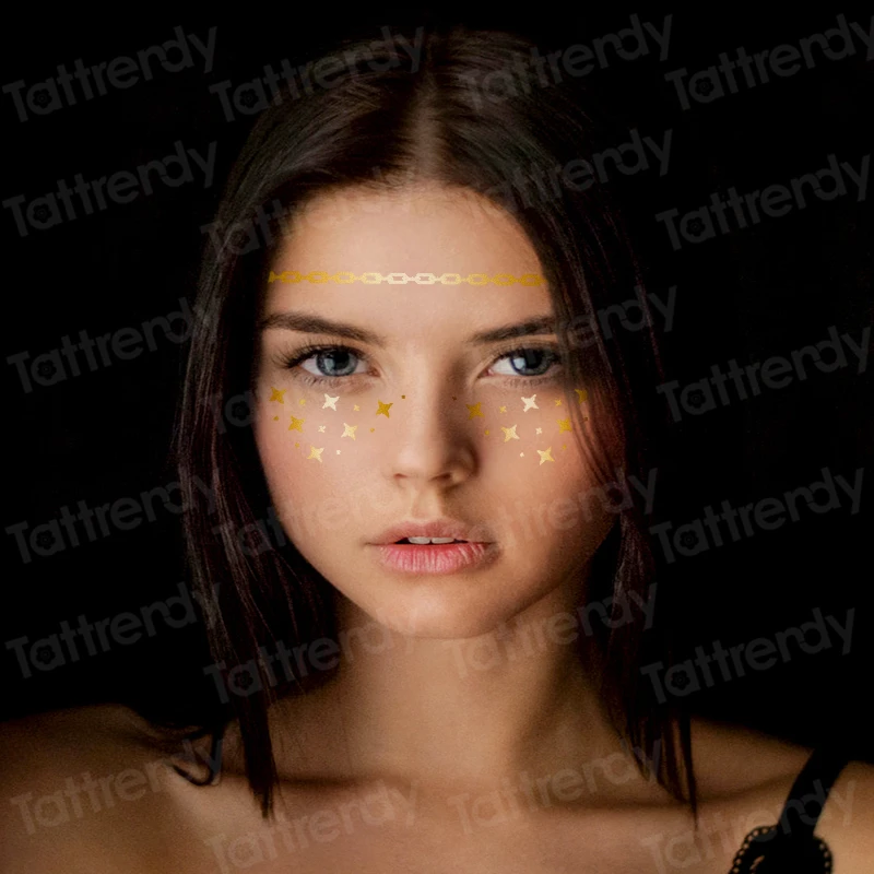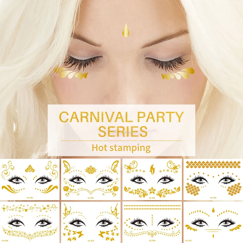 Металлические временные тату для глаз, наклейки для макияжа лица, золотые ювелирные украшения, тату для индийской вечеринки, модные тату для девочек, Женские Поддельные татуировки