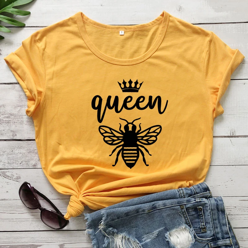 Футболка женская с коротким рукавом, милая рубашка из чистого хлопка в стиле 90-х, с рисунком пчелы, подарок любимому, Топ желтого цвета