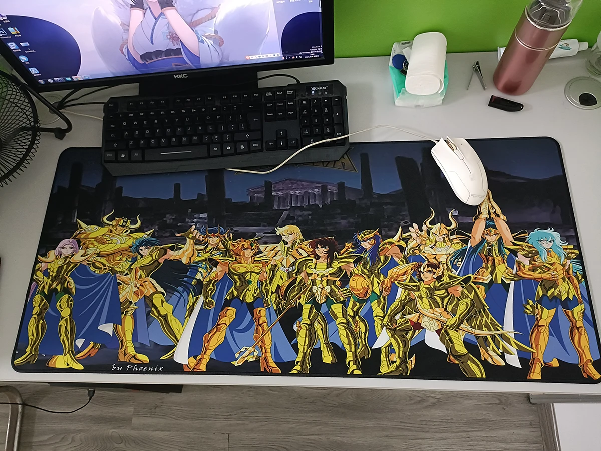 Коврик для мыши MRGBEST игровой, очень большой коврик для мыши из натурального каучука, с закругленными краями, в стиле аниме Saint Seiya, золотые святые