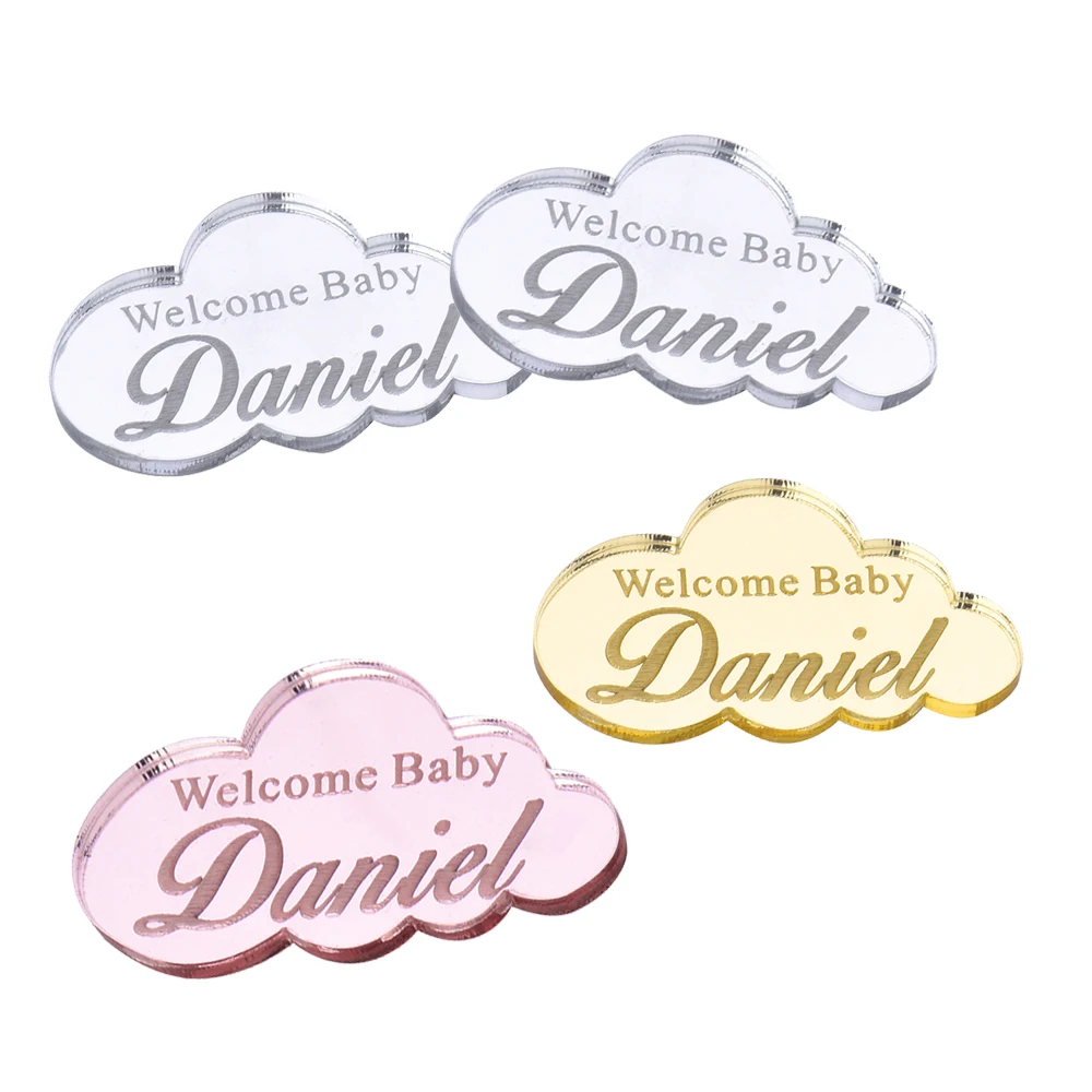 20 шт. Персонализированные Бирки, акриловые зеркальные облака, имя на заказ, приглашение, шоколадная бирка, подарок на Baby Shower, Свадебный декор, Fevor