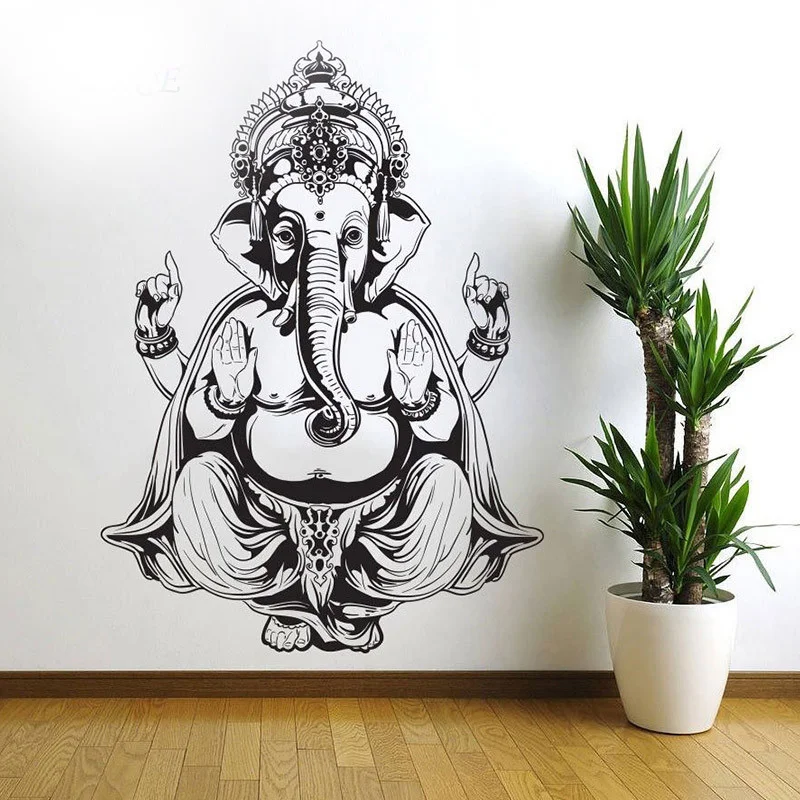 Виниловый слон, Бог, Йога, наклейка на стену, богемный стиль, спальня, гостиная, переводка, Будда, слон, Йога, индуированная мандала, художественный Декор HY331