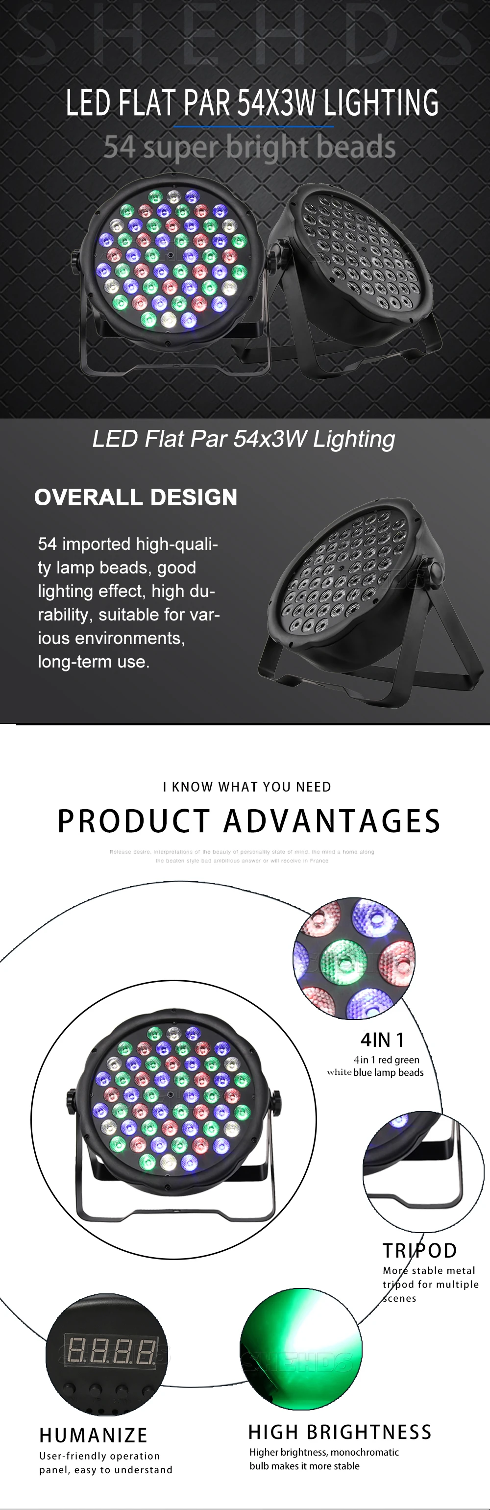 Светодиодный светильник, 14810 шт., 54x3 Вт, RGBW, цветной, плоский, для дискотек, диджея, музыки, вечерние, для клуба, для пола, затемняющий, сценический светильник