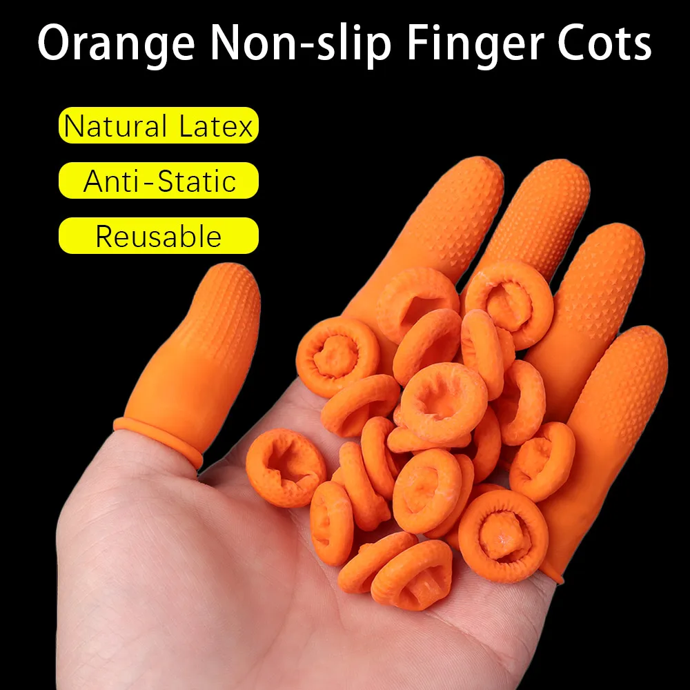 Многоразовые резиновые перчатки для пальцев оранжевого цвета, Нескользящие латексные перчатки для пальцев, защитные перчатки для пальцев, для уборки ногтевого дизайна, 100 шт.
